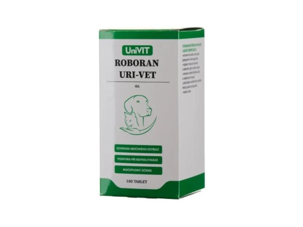 Roboran Uri-vet je schválený veterinární přípravek ve formě tablet, který podporuje funkci ledvin a močových cest koček a psů nejen v případě chronického renálního selhání. U zvířat předchází nadměrné koncentraci moči a zamezuje tak vzniku močových kamenů. Dále chrání močové cesty před patogenními mikroorganismy. Používá se k prevenci a léčbě recidivujících infekcí močového systému, při nespecifických zánětech močovodu, močového měchýře a močové pánvičky, při dysfunkci ledvin a při nefrolithiáze.