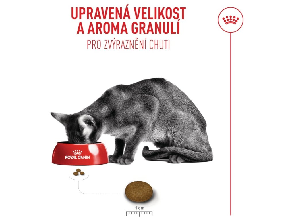Royal Canin Fussy Exigent je kompletní suché krmivo vyvinuté speciálně pro dospělé kočky s velmi vybíravým apetitem. Receptura je nutričně vyvážená a vysoce chutná díky unikátní kombinaci atraktivních vůní a křupavé textury, která zaujme i ty nejnáročnější jedlíky. Granule s energeticky bohatým složením a vysokým obsahem bílkovin pomáhají udržovat zdravou tělesnou hmotnost i u koček, které jedí méně. Složení navíc podporuje zdraví močového systému a je vhodné i pro sterilizované kočky.
