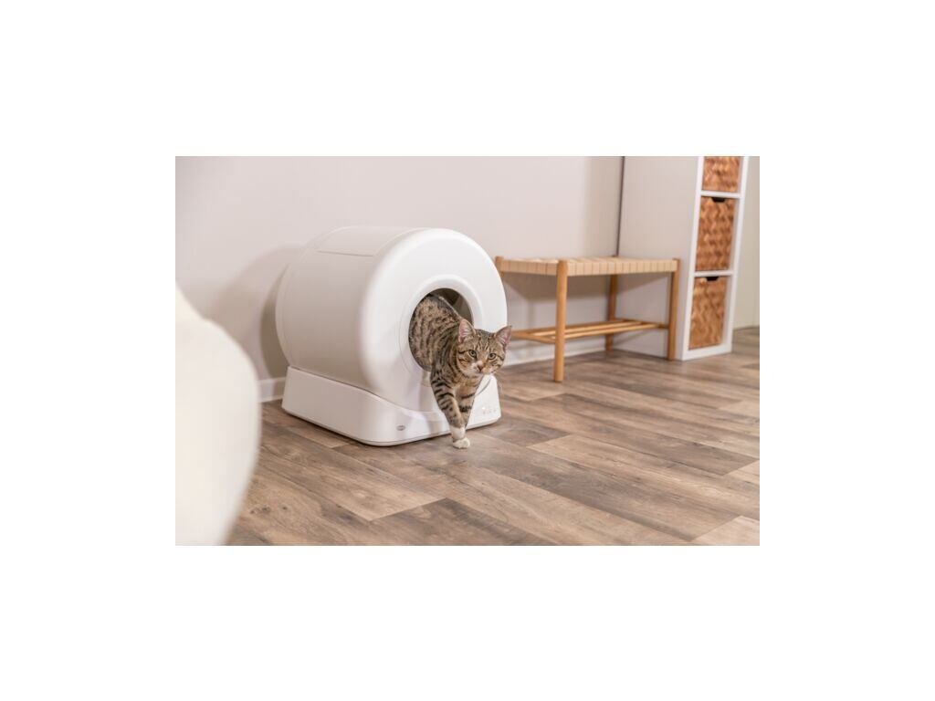 ✔️ Používejte jemné bentonitové hrudkující stelivo – toaleta s ním pracuje nejlépe.