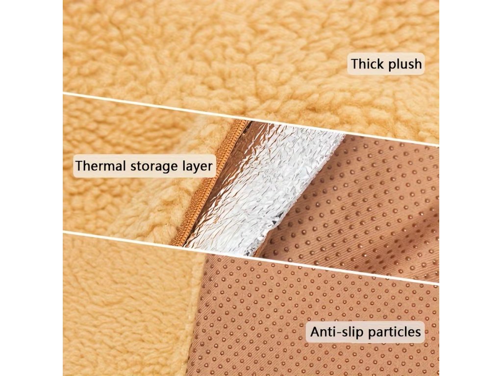Vrchní část podložky je vyrobena z hustého a hebkého plyše, který je velmi příjemný na dotek. Mazlíček si tak může užívat měkký a komfortní povrch pro spánek i relaxaci 🐾.