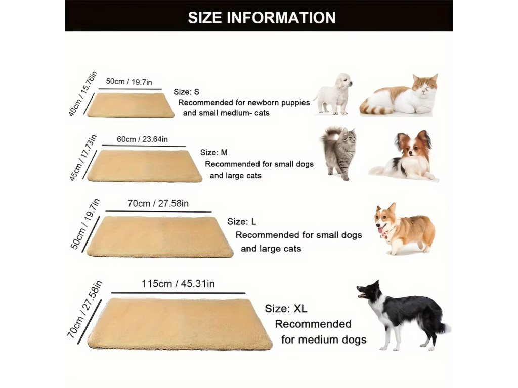 Podložka je vhodná pro psy i kočky všech velikostí, protože je dostupná ve více velikostech.