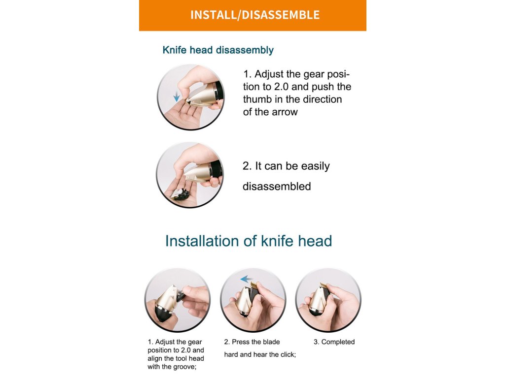 Vlastnosti: tichý motor, snadné čištění vyjímatelných hlavic, možnost nastavení různé délky