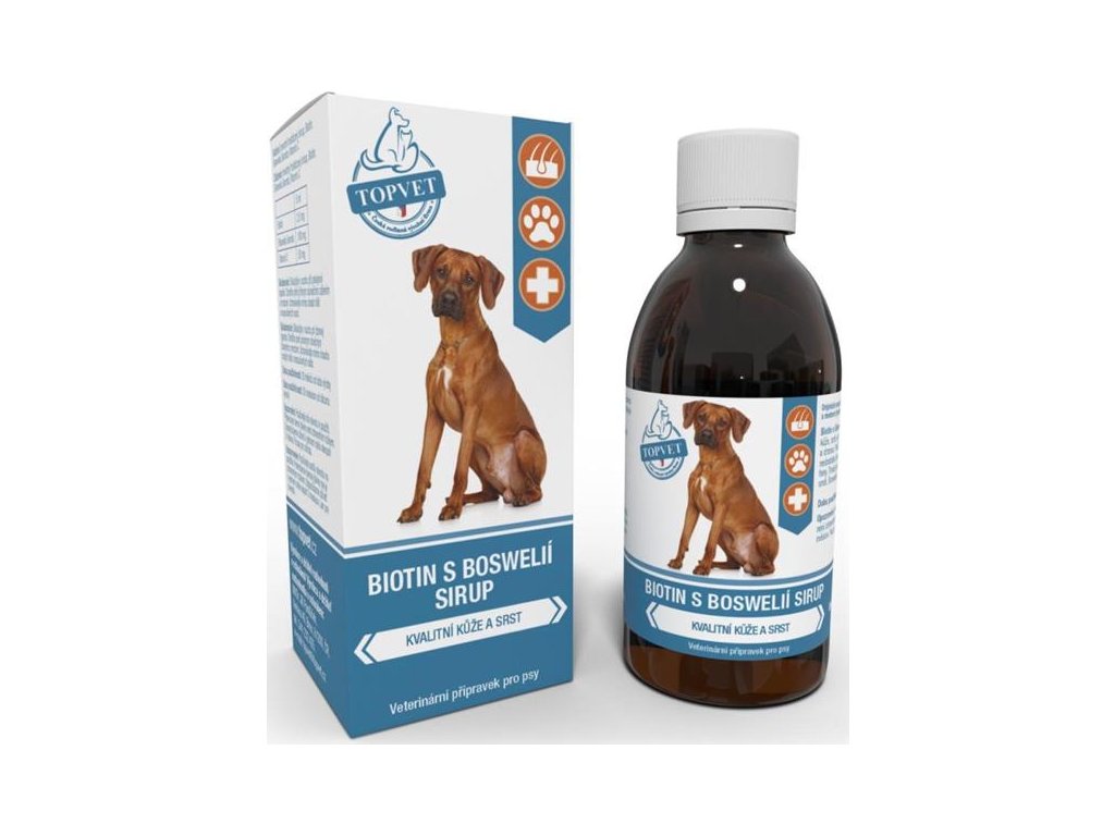 Biotin s Boswélií je doplňkem stravy, který se podílí na zlepšení kvality kůže, srsti a drápků. Při nedostatku biotinu se srst stává matnou, lomivou a drsnou. Pokožka je přesušená, svědivá a s tvorbou lupů. Drápky jsou při nedostatku lomivé a třepivé. Biotin je vhodný doplněk také pro březí a kojící feny. Trvalé podávání biotinu usnadňuje rozčesávání a zabraňuje plstnatění srsti. Boswélie je již stovky let používána pro své hojivé účinky.