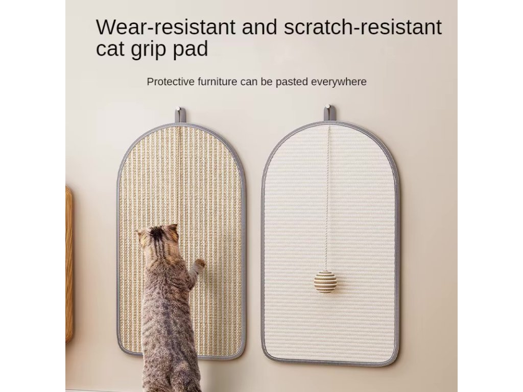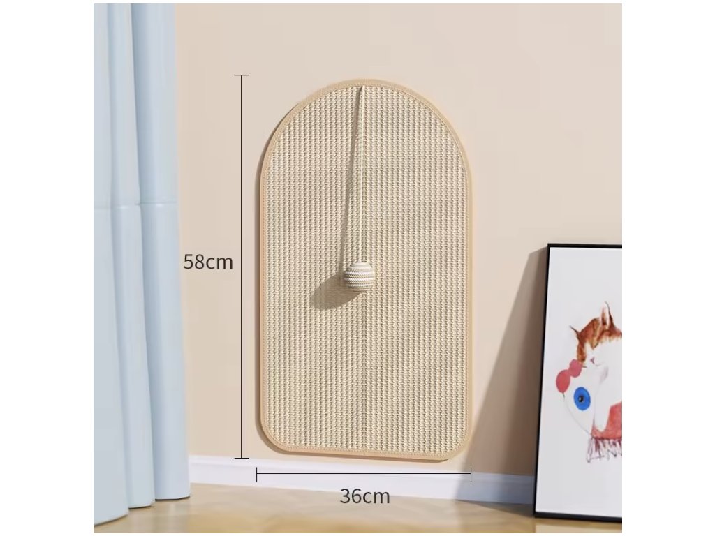 Škrabadlo pro přirozené obrušování drápků vaší kočičky. Je vyrobeno z přírodního sisalového materiálu s dlouhou životností. Škrabadlo zavěsíte na zeď pomocí poutka nebo jej můžete přehodit přes opěradlo pohovky či křesla a připevnit pomocí suchého zipu. Lze i volně položit na zem. Podložka je opatřena malým sisalovým míčkem se kterým si kočička může hrát a přitom si brousit drápky. Vybírat můžete ze dvou velikostí 58x36 cm nebo 65x40 cm.