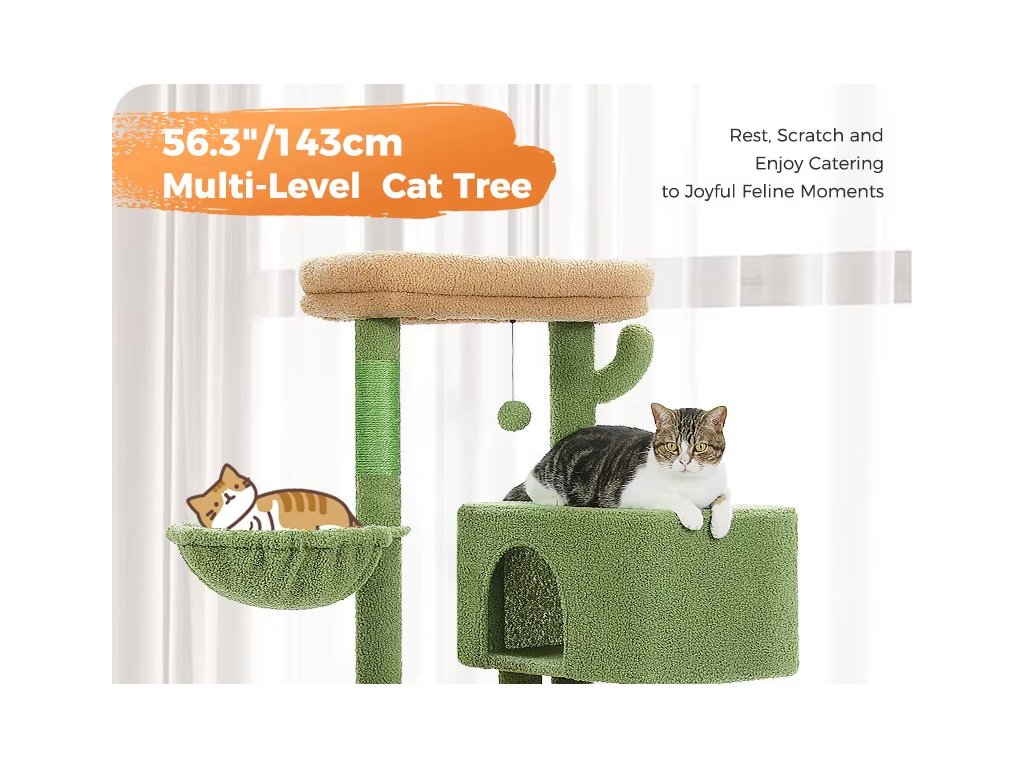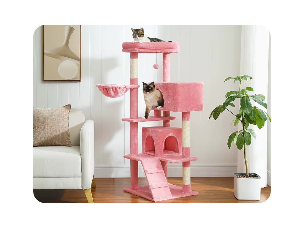 Škrabadlo KOČIČÍ STROM 4-patrové 2 boudičky a 2 pelíšky - 143 cm