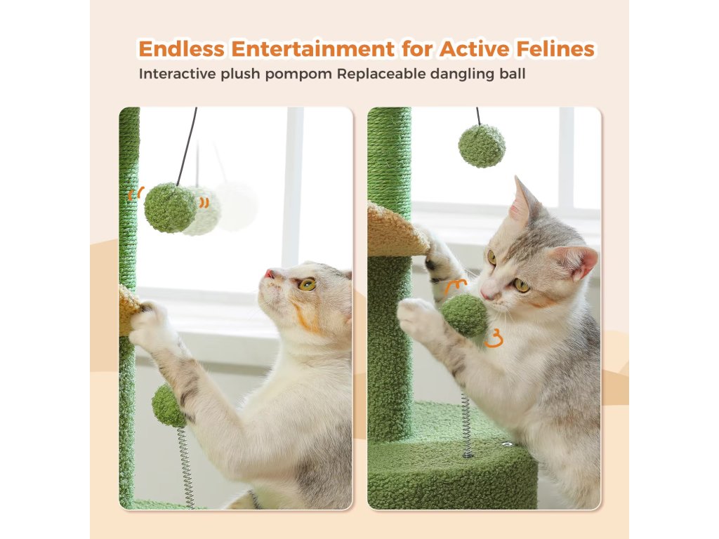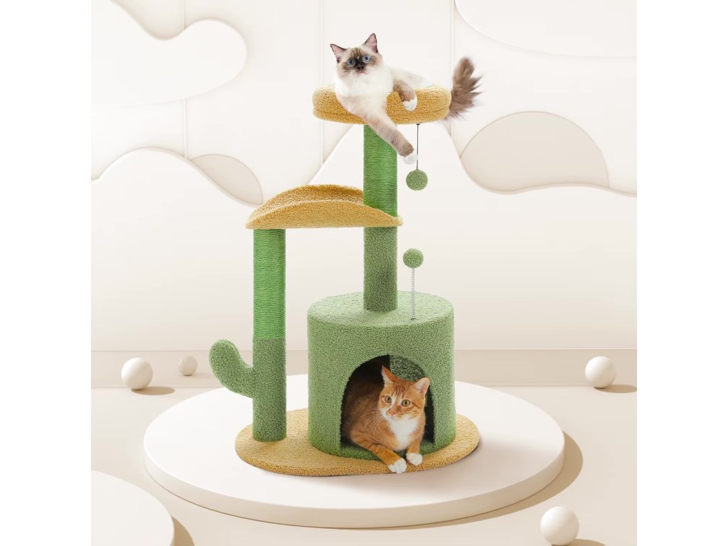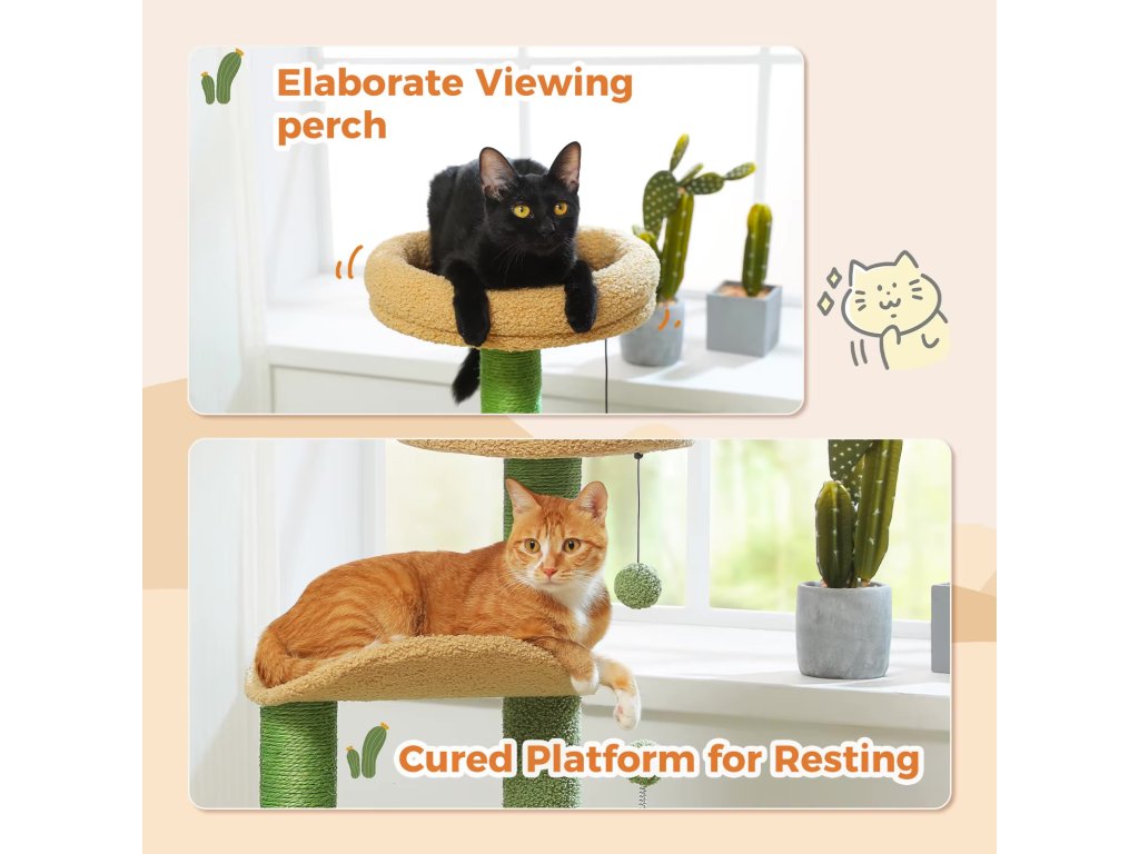 Kočičí stromy jsou pro kočky ideálním místem, kde se mohou vyřádit, brousit si drápky a nerušeně si zdřímnout. Tento strom má velké horní odpočívadlo (průměr cca 36 cm) ve tvaru pelíšku s okrajem, domeček ve kterém může kočička odpočívat nebo se schovávat a pozorovatelnu, ze které bude mít přehled o všem co se kde děje. Pevná, velká základna zajistí stabilitu a bezpečnost i při tom nejdivočejším hraní. Strom má dva sloupky obmotané přírodním sisalem, na kterých si kočička bude přirozeně obrušovat svoje drápky a nebude tak ničit váš nábytek. Je vyroben z vysoce kvalitních přírodních desek, materiálu šetrného k pokožce a přírodního sisalového materiálu a je navržen tak, aby nabízel bezpečné a pohodlné místo pro vaše mazlíčky. Výška tohoto stromu je 84 cm.