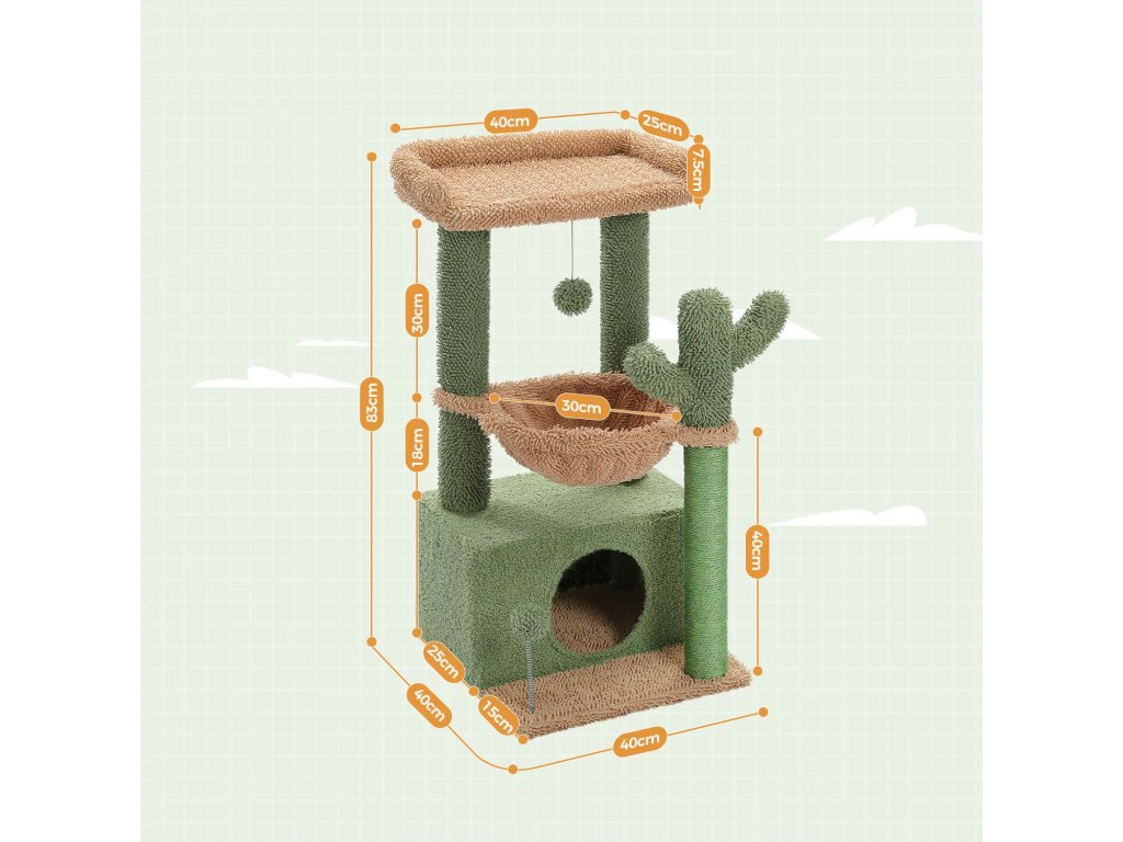 Vlastnosti: designový - KAKTUS, škrabadlo, odpočívadlo a hrací věž 4v1