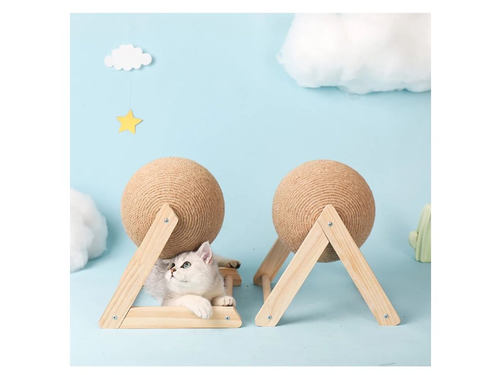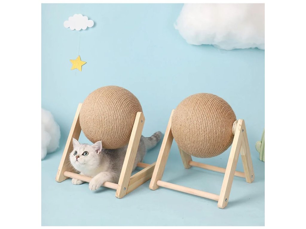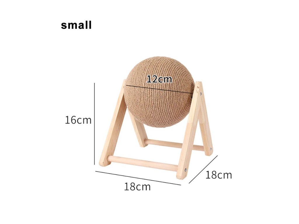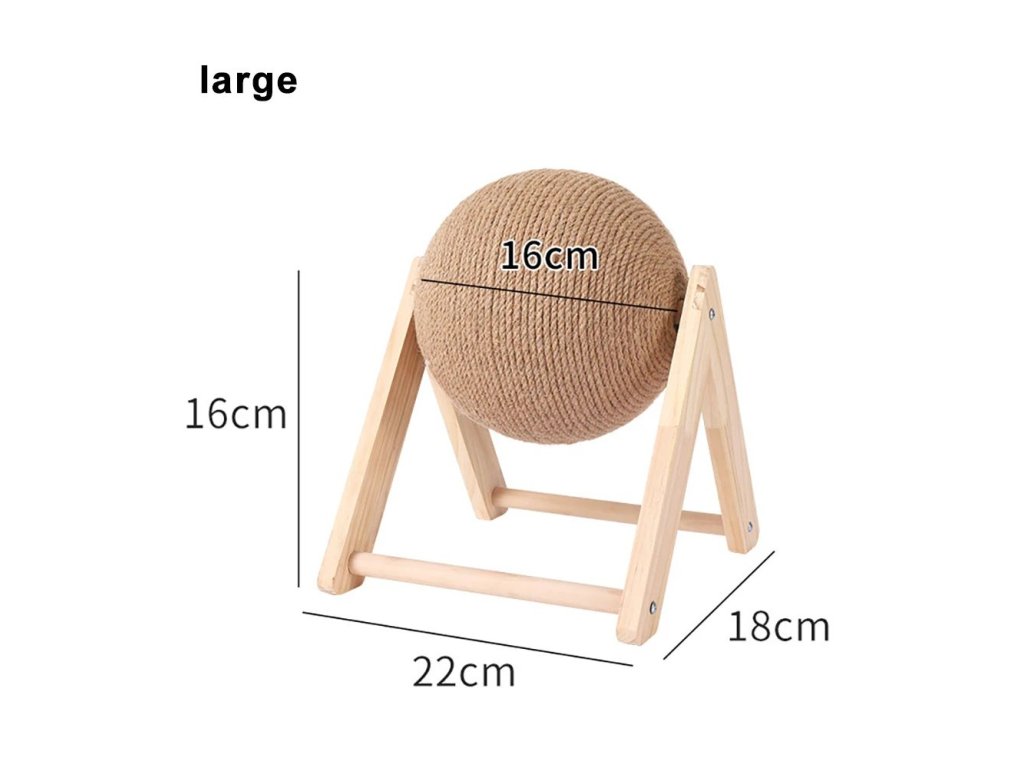 Velmi stabilní škrabadlo pro přirozené obrušování drápků vaší kočičky. Škrabadlo je vyrobeno z masivního dřeva s velkou sisalovou koulí se kterou si kočička může hrát a přitom pečovat o své drápky. S tímto škrabadlem se rozhodně nebude nudit a navíc už jí nenapadne škrábat a ničit váš nábytek. Vybírat můžete ze dvou variant - typ L a typ V a ze dvou velikostí.