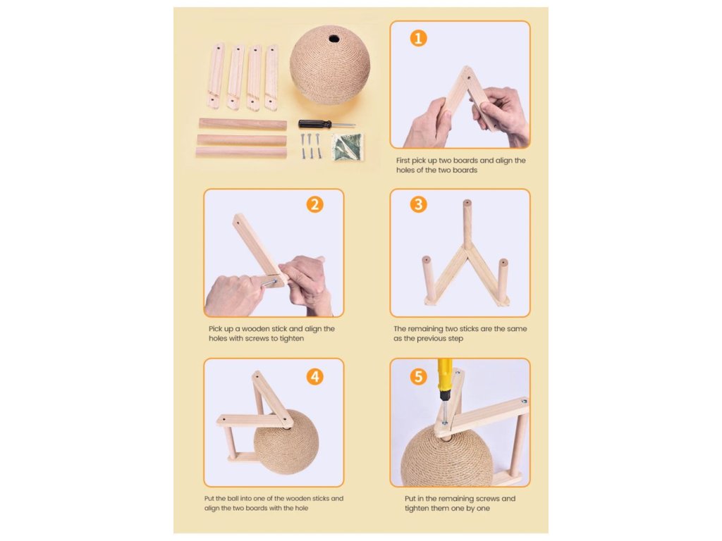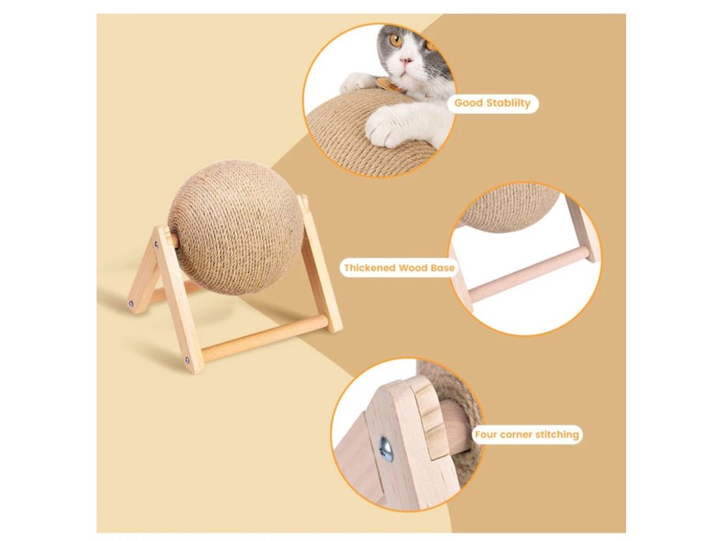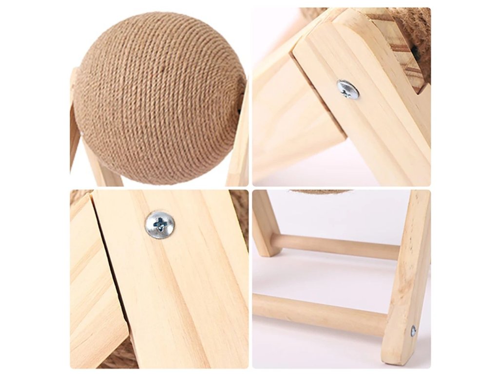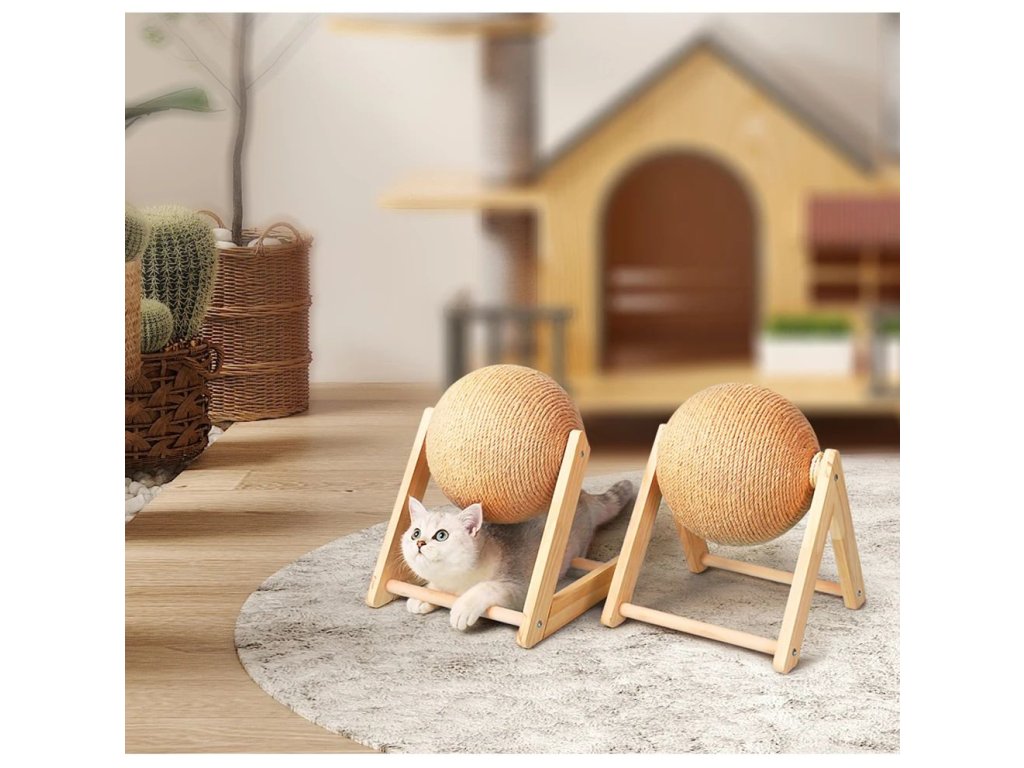 Velmi stabilní škrabadlo pro přirozené obrušování drápků vaší kočičky. Škrabadlo je vyrobeno z masivního dřeva s velkou sisalovou koulí se kterou si kočička může hrát a přitom pečovat o své drápky. S tímto škrabadlem se rozhodně nebude nudit a navíc už jí nenapadne škrábat a ničit váš nábytek. Vybírat můžete ze dvou variant - typ L a typ V a ze dvou velikostí.