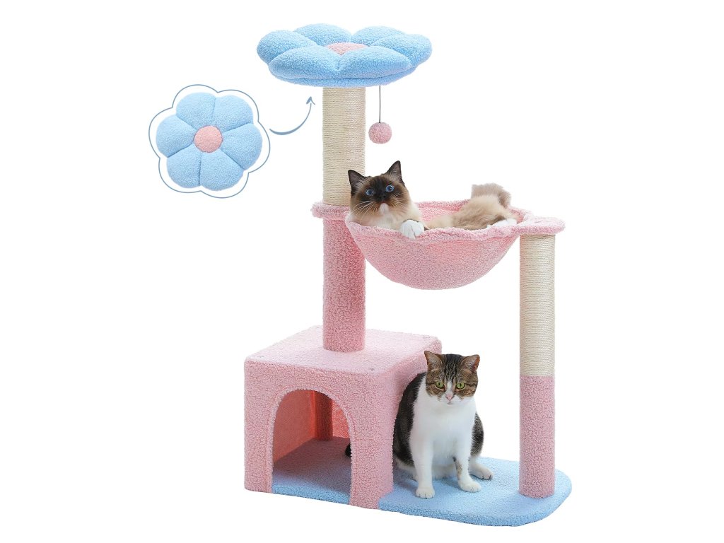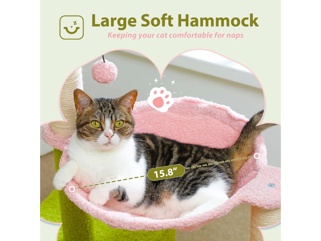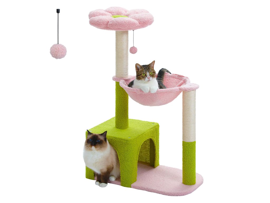 Škrabadlo pro kočky v pastelových barvách s pelíškem ve tvaru kytičky (93 cm) růžovo-zelené