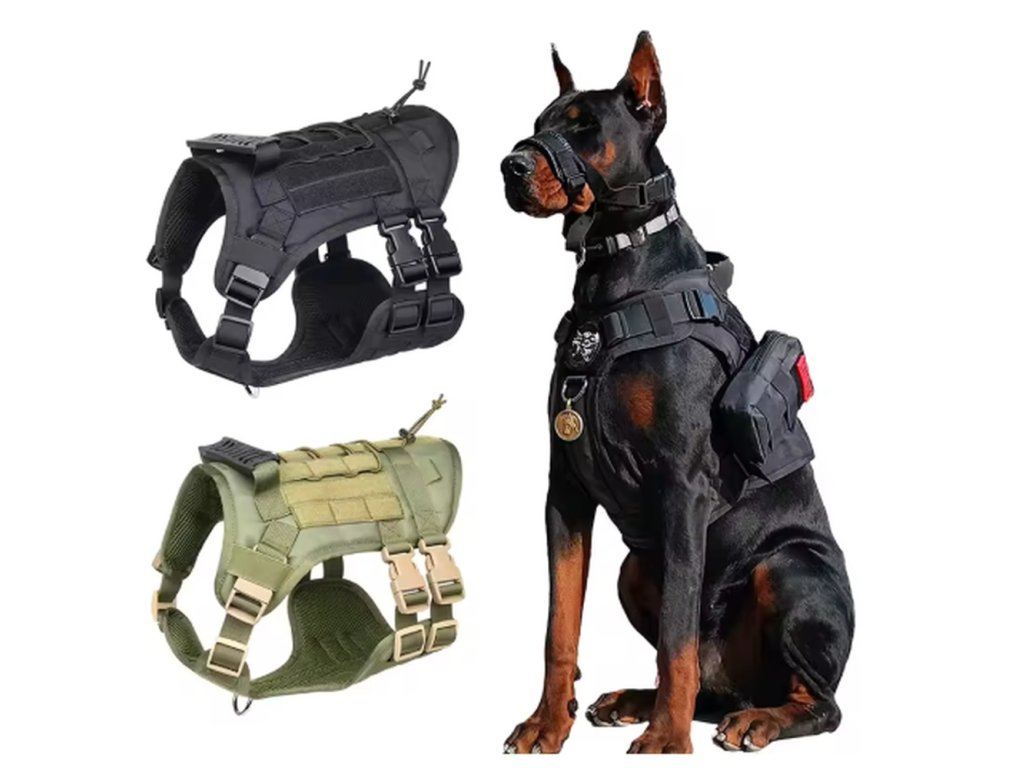 Taktická (tréninková) vesta pro psy (s pouzdrem nebo vodítkem) je profesionální taktický postroj pro psy, který poskytuje maximální kontrolu, stabilitu a komfort při výcviku, sportu i každodenních procházkách 🐕. Díky pevné konstrukci, nastavitelným popruhům a praktické horní rukojeti je ideální pro aktivní psy i náročnější trénink.