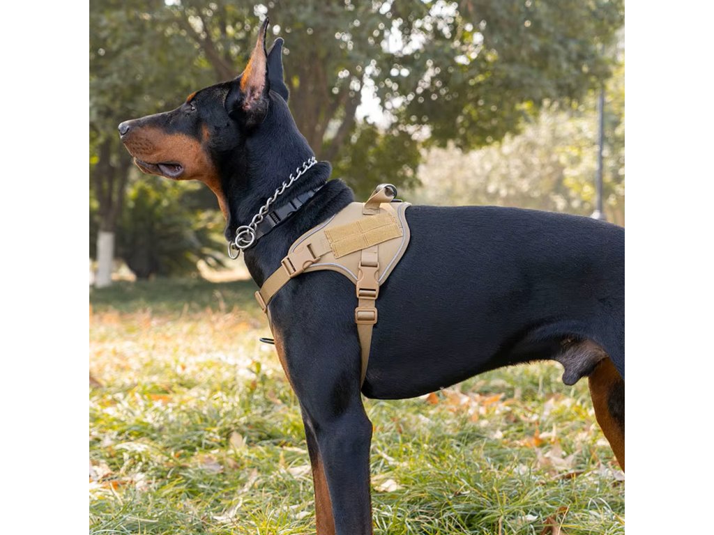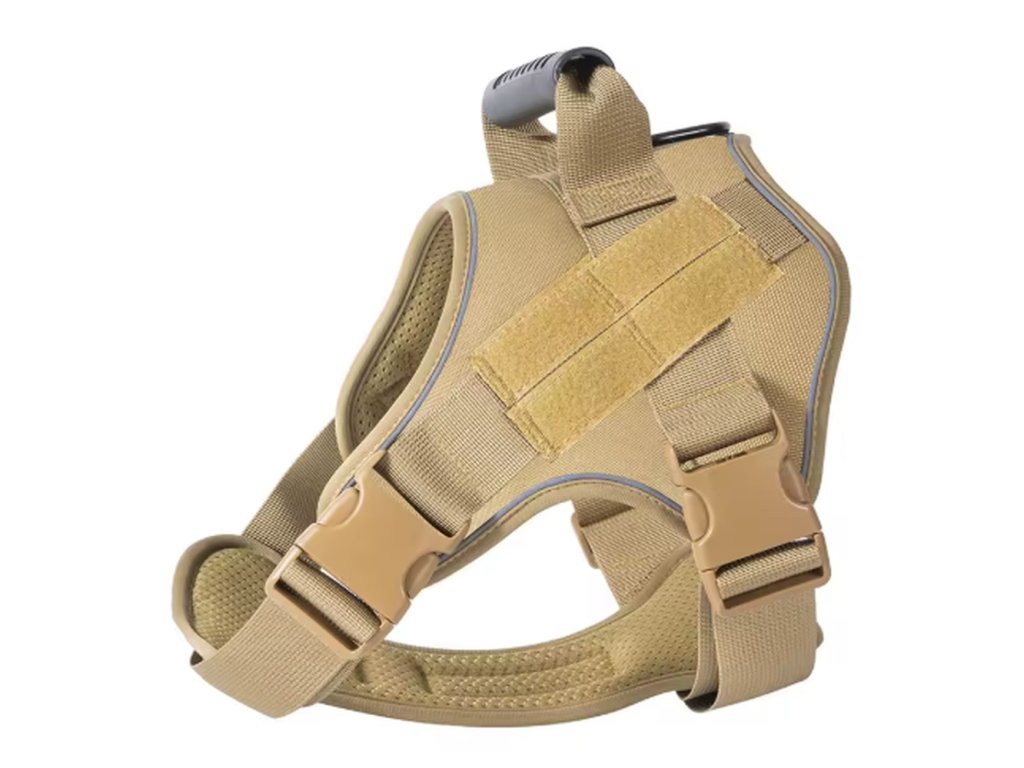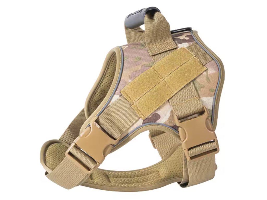Tento taktický postroj pro psy je navržen tak, aby perfektně přiléhal k tělu psa a rovnoměrně rozkládal tlak při vedení na vodítku. Díky tomu je výrazně šetrnější než klasický obojek a zajišťuje větší komfort během pohybu.