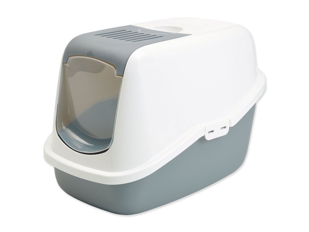 Toaleta pro kočky s plastovým krytem, dvířky a filtrem.