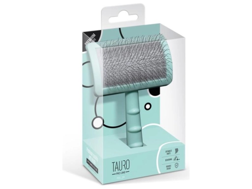 Prémiový kartáč Tauro Pro Line je navržen pro pohodlné kartáčování psů a koček všech plemen a typů srsti. Ergonomická rukojeť a nízká hmotnost snižují únavu ruky během kartáčování. Měkčí drátky z nerezové oceli zahnuté v úhlu 135° pročešou srst, načechrají ji, odstraní odumřelé chlupy a poskytnou jemnou masáž, která zlepšuje krevní oběh a podporuje růst nových chlupů. Kartáč snadno vyčeše i hůře dostupná místa: podpaží, čenich, uši a tlapky. Srst je po česání hladší a lesklejší i díky speciálnímu antistatickému povrchu kartáče, který zabraňuje hromadění elektrického náboje.