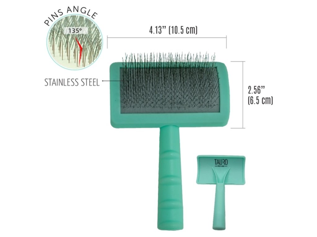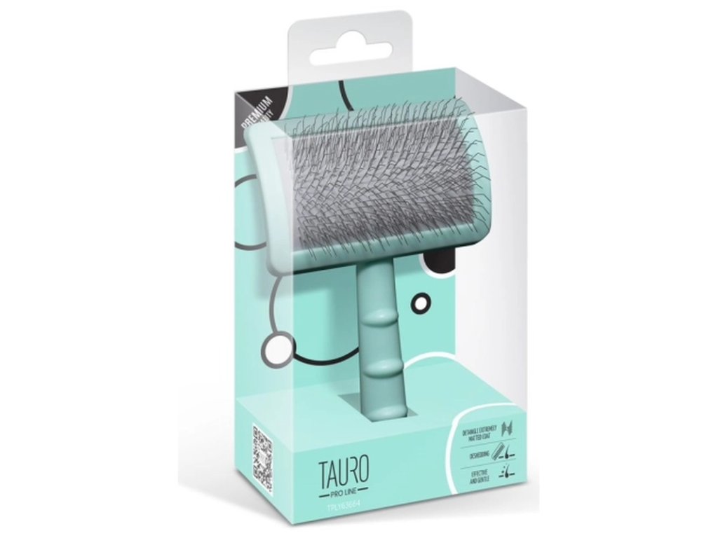 Prémiový kartáč Tauro Pro Line je navržen pro pohodlné kartáčování psů a koček všech plemen a typů srsti. Ergonomická rukojeť a nízká hmotnost snižují únavu ruky během kartáčování. Tvrdší drátky z nerezové oceli zahnuté v úhlu 135° pročešou srst, načechrají ji, odstraní odumřelé chlupy a poskytnou jemnou masáž, která zlepšuje krevní oběh a podporuje růst nových chlupů. Kartáč snadno vyčeše i hůře dostupná místa: podpaží, čenich, uši a tlapky. Srst je po česání hladší a lesklejší i díky speciálnímu antistatickému povrchu kartáče, který zabraňuje hromadění elektrického náboje.