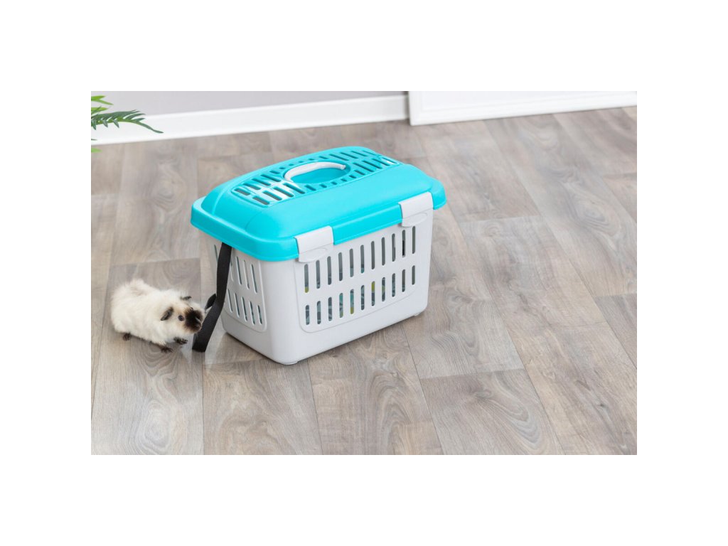 Transportní box MIDI CAPRI s popruhem, 44x33x32cm (max. 5kg), světle šedá/tyrkysová