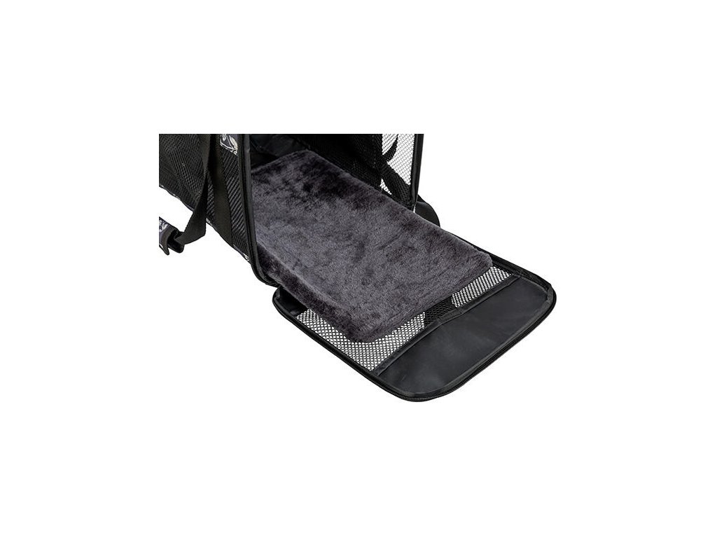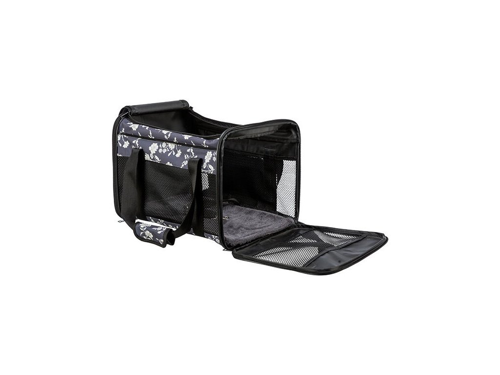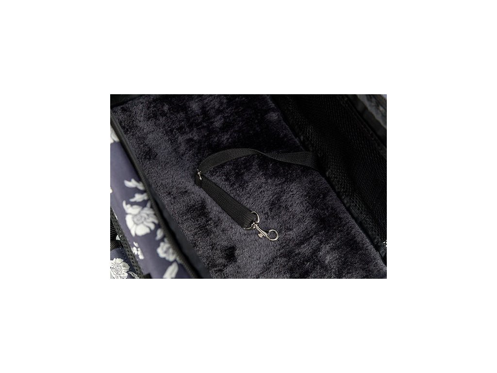 Spodní část tašky tvoří vyjímatelné dno s plyšovým potahem, které je měkké a pohodlné, a zároveň snadno udržovatelné. Celá taška je vyrobena z odolného polyesteru v decentní černé barvě, takže působí stylově a diskrétně.