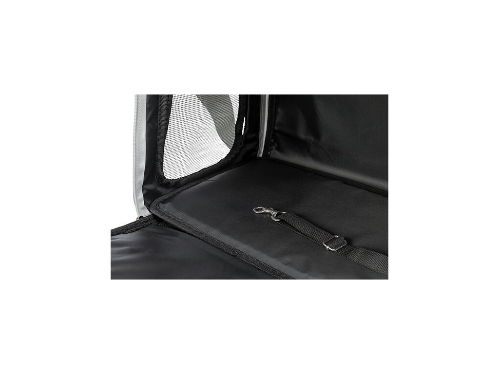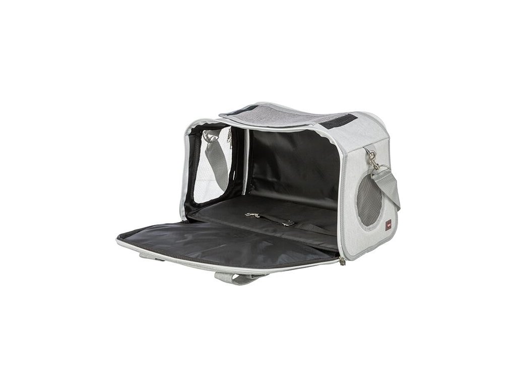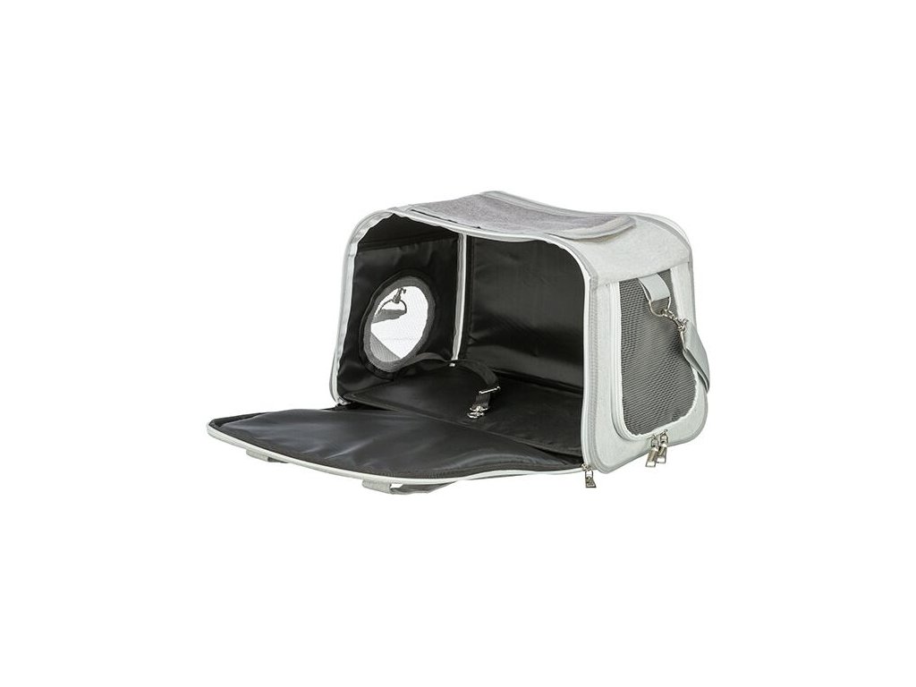 Taška se otevírá shora i zepředu, což umožňuje pohodlné vkládání i manipulaci se zvířetem. Horní síťovanou částlze zakrýt látkou, čímž vytvoříte útulné prostředí a snížíte vnější podněty, které by mohly mazlíčka stresovat 😌🛏️. To ocení především plašší jedinci nebo zvířata se sklony k úzkosti.
