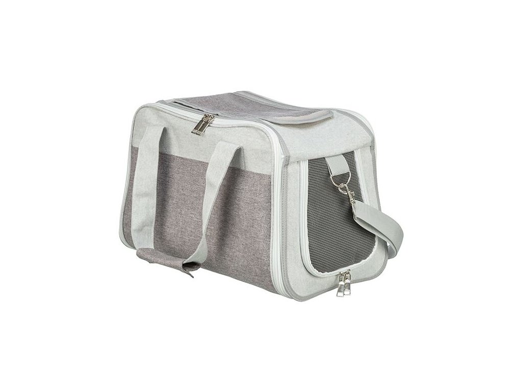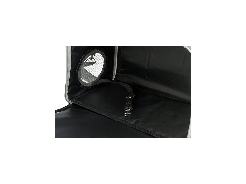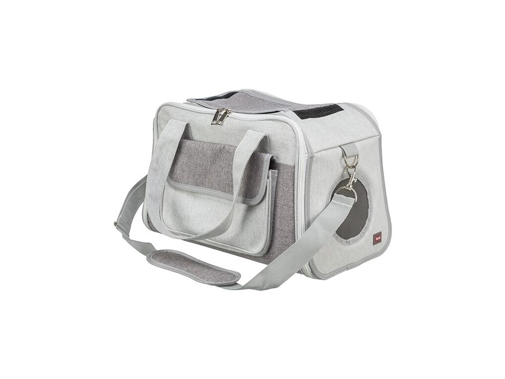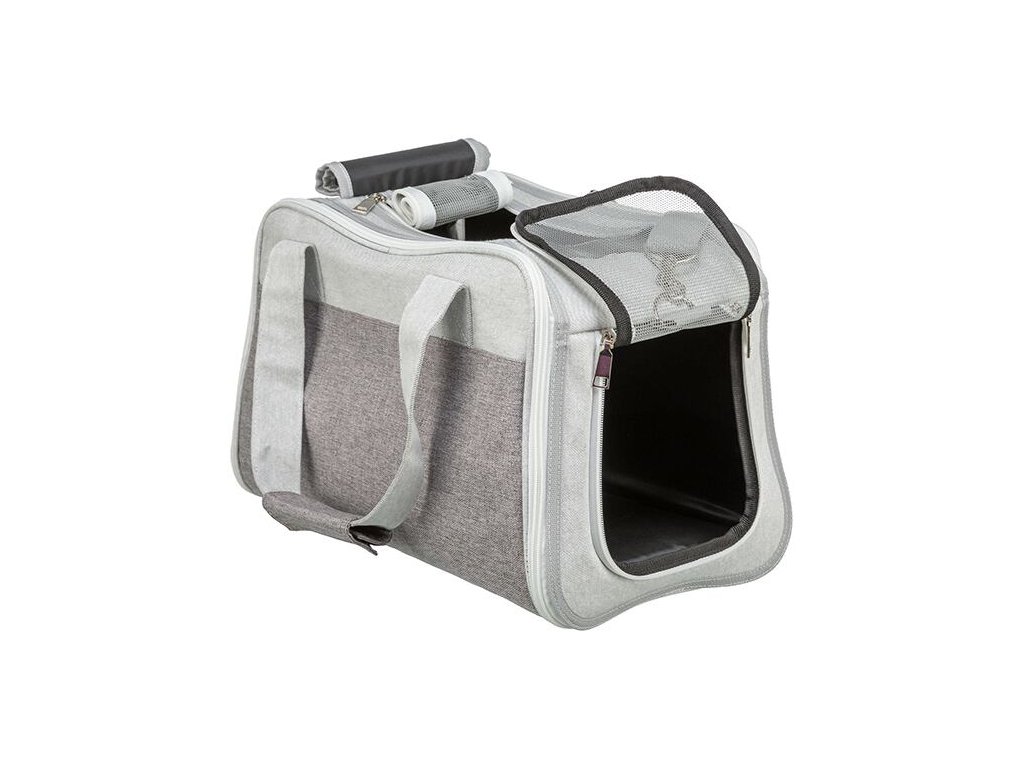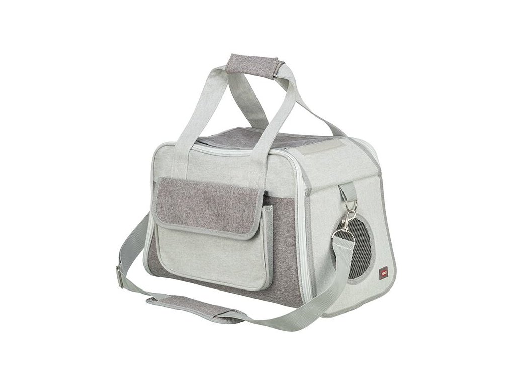 Transportní taška LIBBY, 25 × 27 × 42 cm, do 7 kg, šedá je kompaktní a bezpečná přepravní taška pro malé psy a kočky, navržená s ohledem na citlivější zvířata, která se hůře přizpůsobují přepravě 🐾👜. Je ideální pro klidné cestování – dominuje jí diskrétní design s minimalistickým síťováním, který poskytuje větší pocit bezpečí a soukromí.