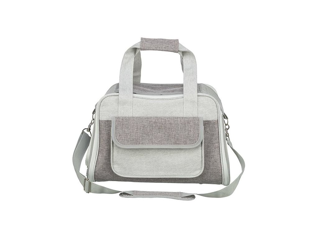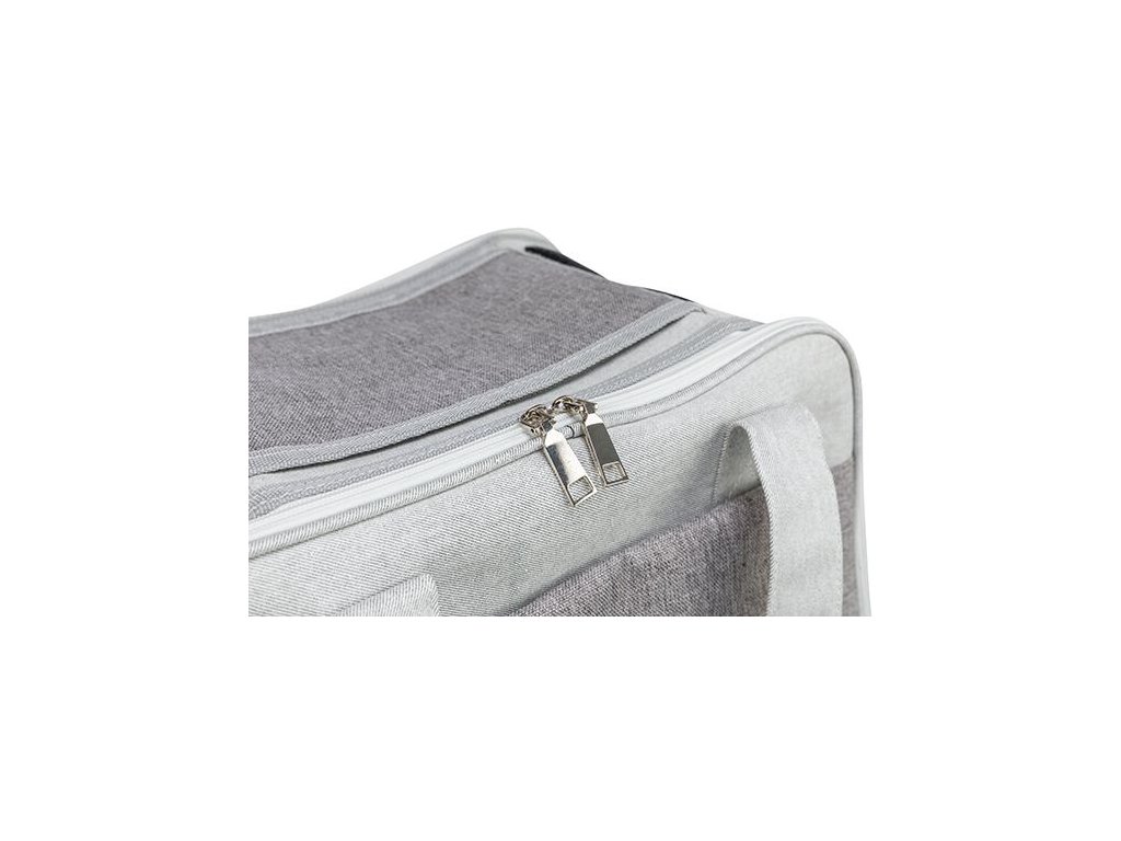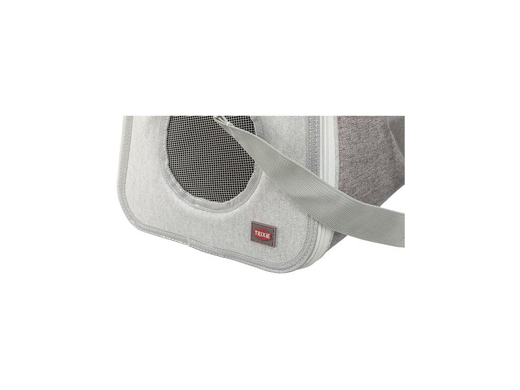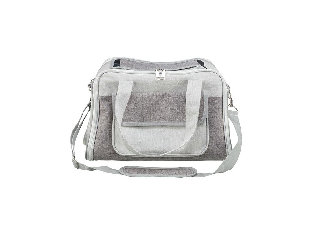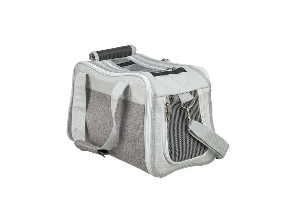 Transportní taška LIBBY, 25 × 27 × 42 cm, do 7 kg, šedá je kompaktní a bezpečná přepravní taška pro malé psy a kočky, navržená s ohledem na citlivější zvířata, která se hůře přizpůsobují přepravě 🐾👜. Je ideální pro klidné cestování – dominuje jí diskrétní design s minimalistickým síťováním, který poskytuje větší pocit bezpečí a soukromí.