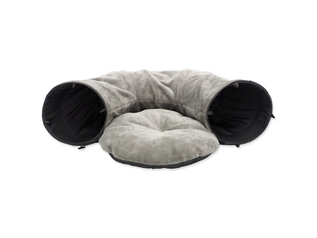 Tunel Magic Cat plyš tvar U s polštářkem šedý 95x26cm