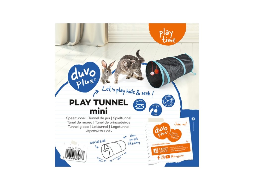 Hrací tunel Duvoplus Mini pomáhá udržet mazlíčky ve formě. Je skládací a vhodný pro vnitřní i venkovní použití. Pro ještě větší zábavu je vybavený míčkem a rolničkou. Tunel je ideální pro kočky i drobné savce.