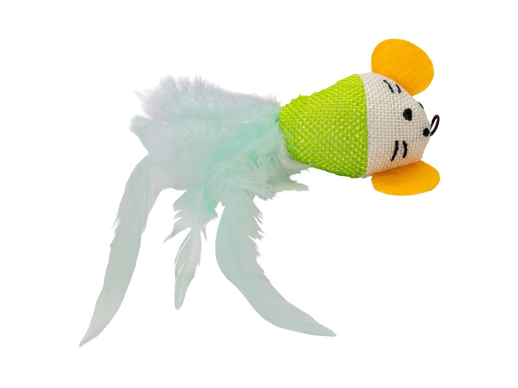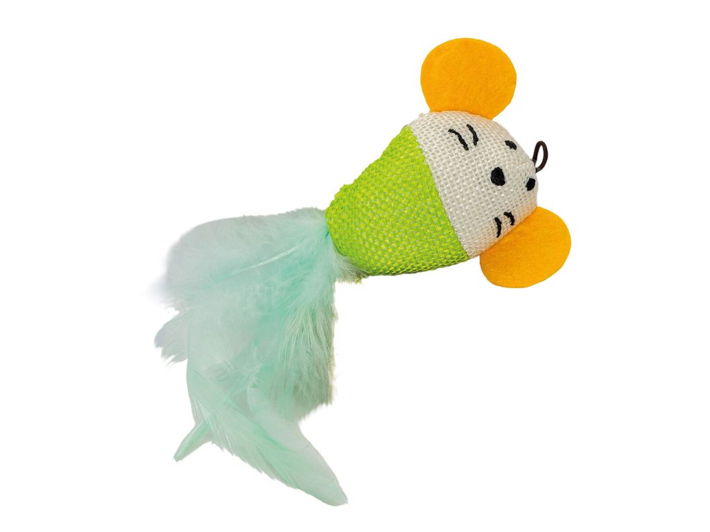 HipHop Cat tkaná ušatá Myška s peřím je kvalitní hračkou pro kočky. Peříčko místo ocásku láká ke hře.
