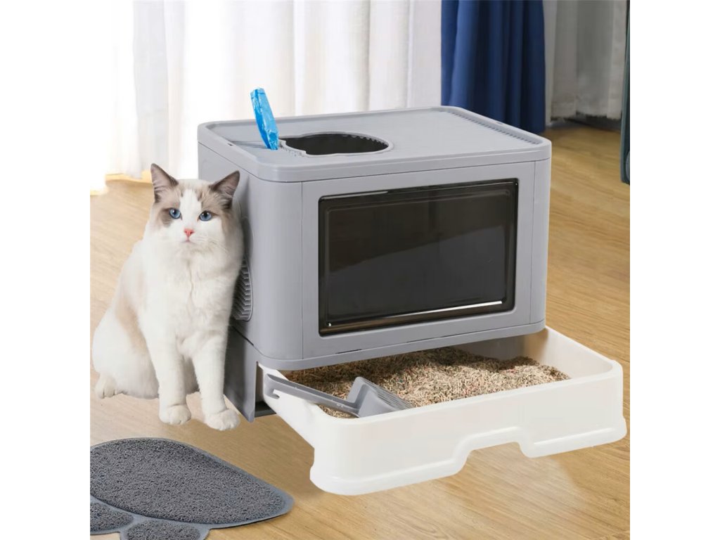 Uzavřená kočičí toaleta s dvířky - skládací (+ lopatka a kartáč)
