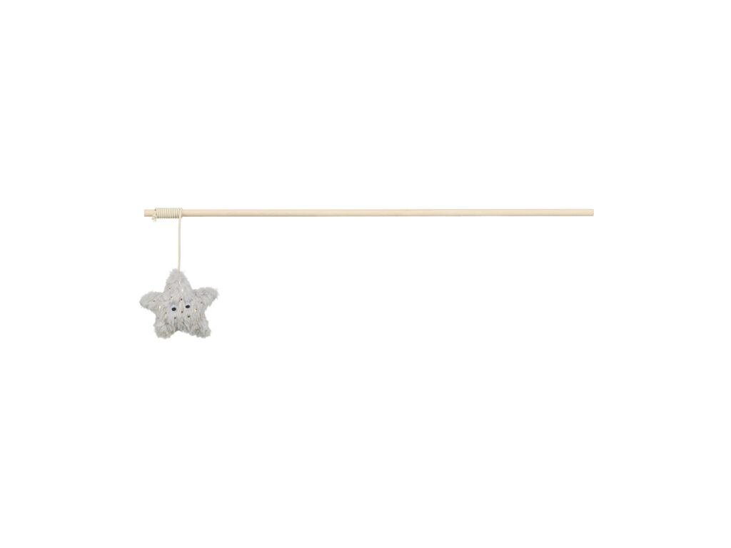 Hračka má dřevěný prut s třpytivou plyšovou hvězdičkou, která je měkká, lesklá a pohybem na provázku přitahuje pozornost kočky 💫. Uvnitř hvězdičky se ukrývá catnip (šanta kočičí), který kočky přirozeně stimuluje a povzbuzuje ke hře, skákání i lovení 🐾💨.