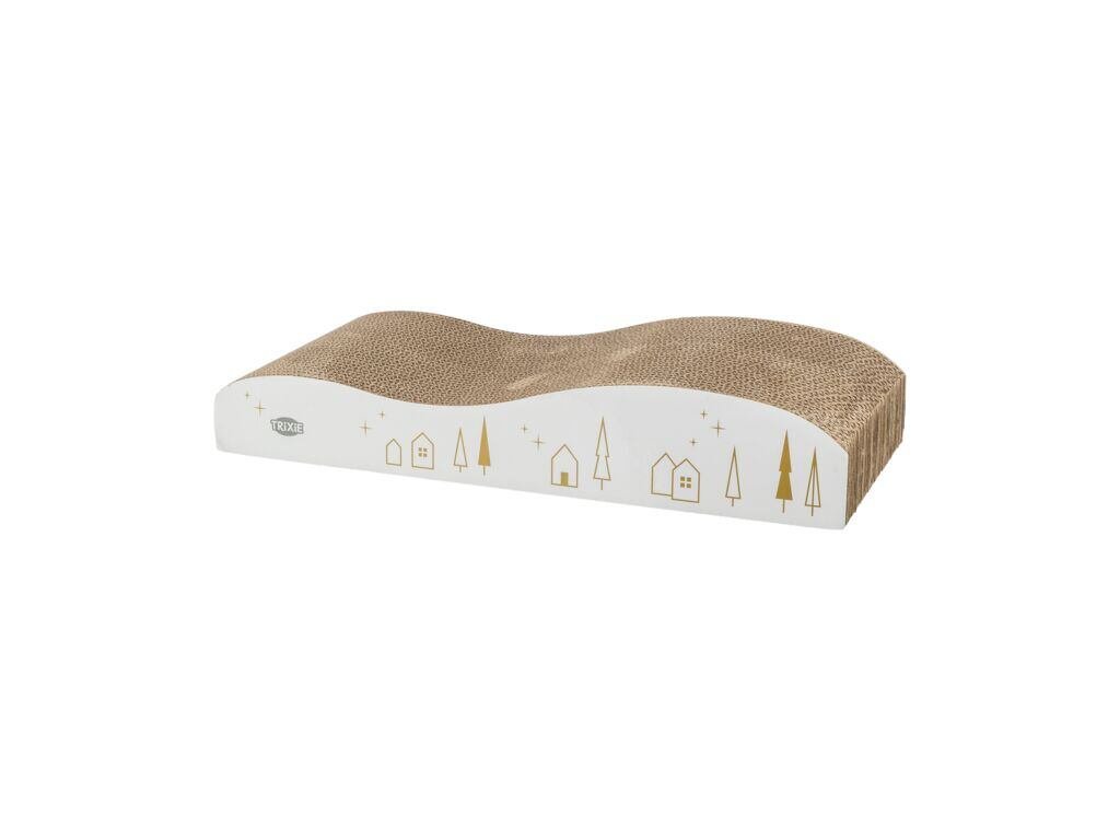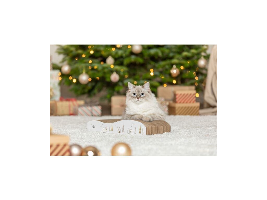 Vyrobené z pevné vlnité lepenky, je škrabadlo ekologické, odolné a šetrné k tlapkám. Zároveň pomáhá chránit nábytek a koberce před poškozením, takže je nejen zábavné, ale i praktické 🪶💫. Elegantní bílo-zlaté provedení s vánočním designem z něj dělá dekorativní doplněk, který zapadne do každého interiéru.