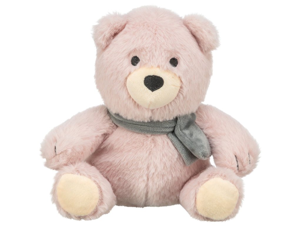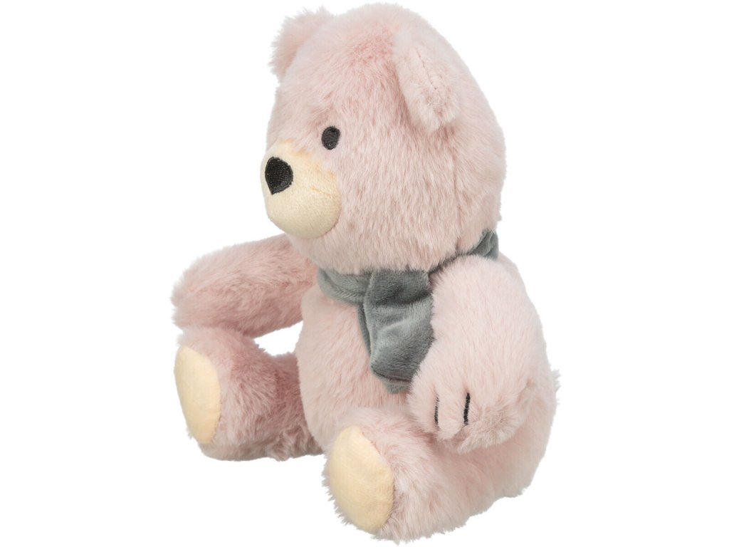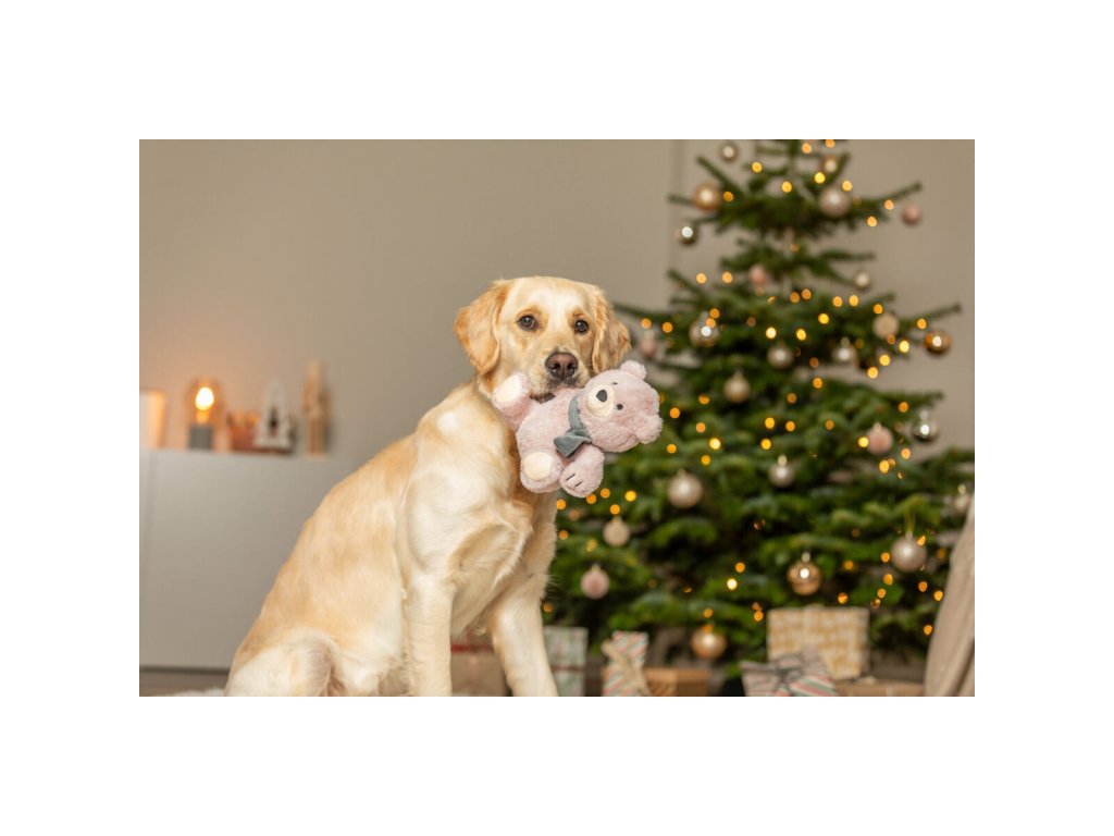 Kombinace růžové barvy a vánoční šály dodává medvídkovi útulný, hřejivý a sváteční vzhled, díky kterému se stane oblíbeným společníkem vašeho mazlíčka nejen o Vánocích 🎁🐕.