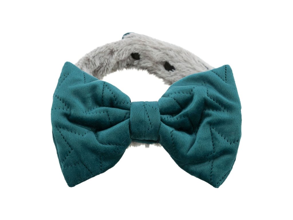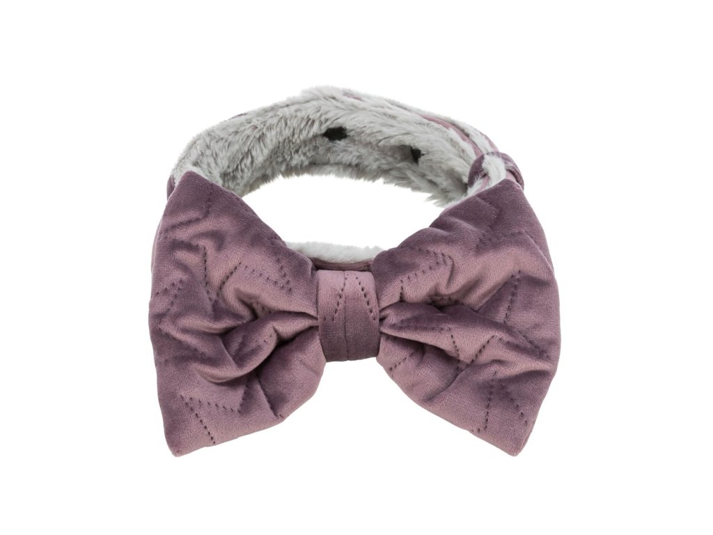 Vánoční obojek s mašlí, S-M, samet/plyš, lila/zelená (1 ks)