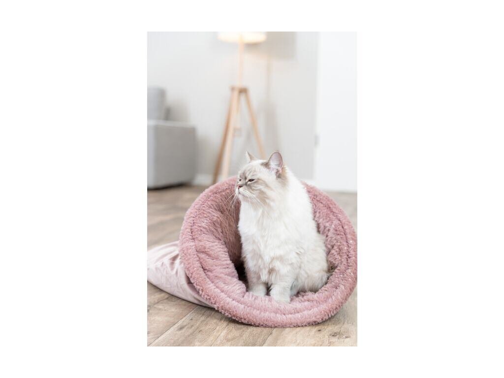 Rozměr ø 40 × 60 cm je ideální pro kočky nebo malé psy, kteří rádi zalézají do měkkého a teplého prostoru. 💖 Stylová starorůžová barva dodává pelíšku jemný, elegantní a sváteční vzhled.