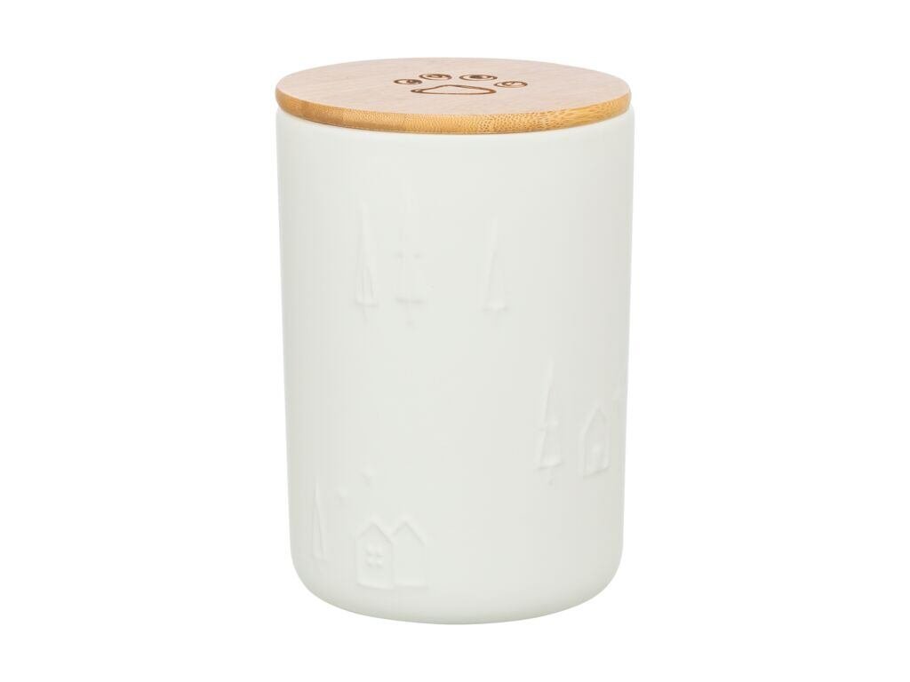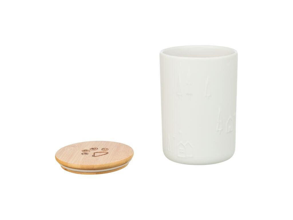 Vánoční zásobník na pamlsky, ø 13 × 19 cm, keramika/dřevo, bílá 🎄🐾 je elegantní a praktický doplněk pro každého majitele domácího mazlíčka, který chce mít pamlsky i krmivo stylově uložené. ✨ Tento nadčasový keramický zásobník z limitované vánoční edice se stane ozdobou vaší kuchyně či obývacího prostoru a zároveň pomůže udržet pamlsky čerstvé a křupavé. 🎁