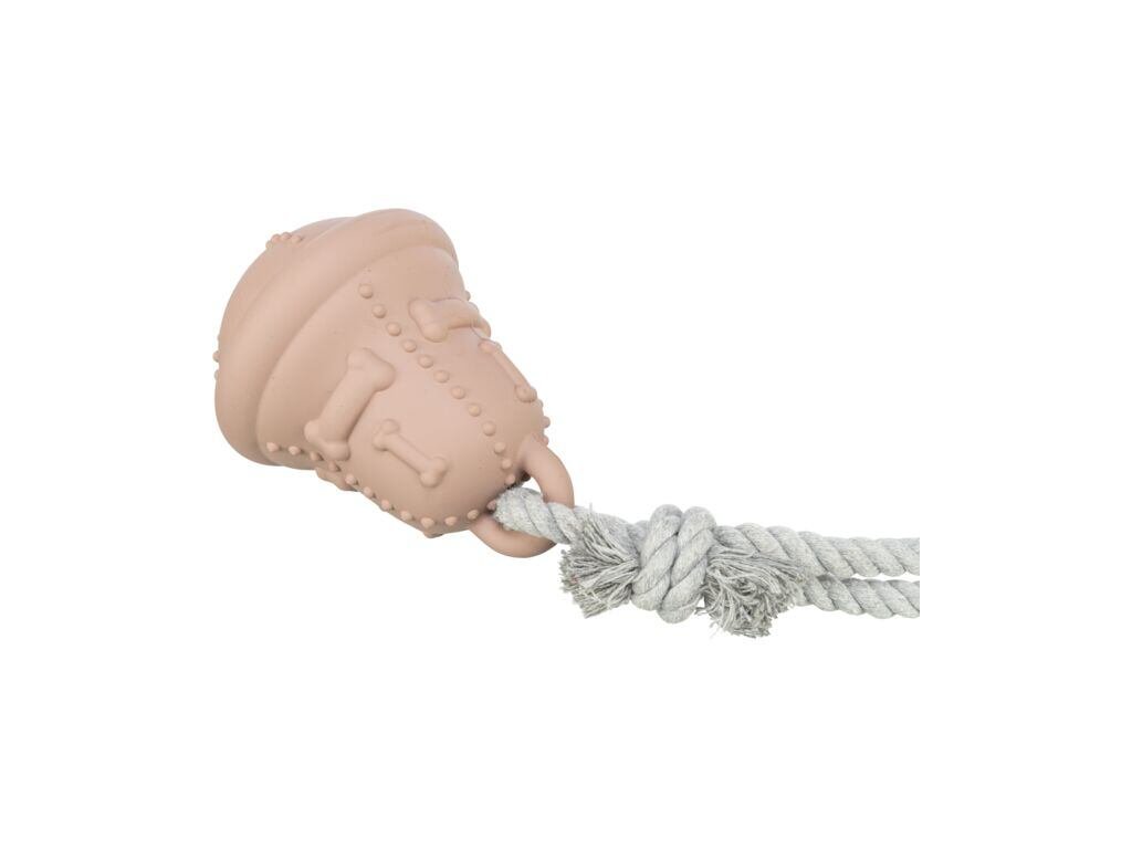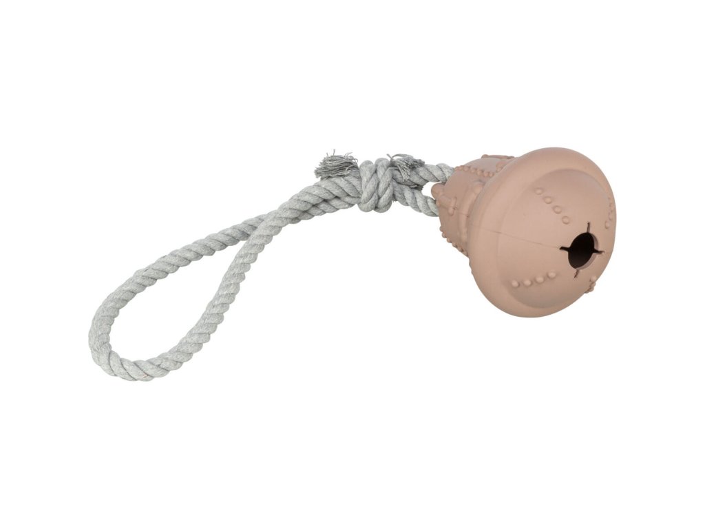 Vánoční zvonek na pamlsky, na laně, ø 12/36 cm, tvrdá guma/bavlna, starorůžová 🎄🐶 je interaktivní hračka 3 v 1 z limitované vánoční edice, která spojuje zábavu, pohyb i odměnu! ✨ Tento stylový zvonek na laně poslouží jako aport, přetahovadlo i skrýš na pamlsky, a tak se stane oblíbenou hračkou každého hravého pejska. 💕