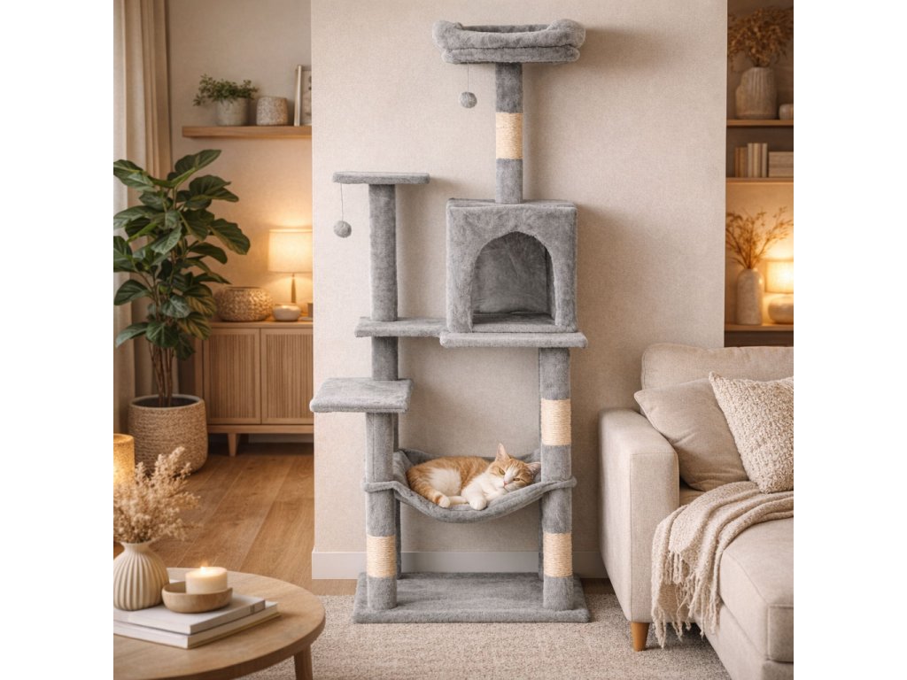 pro každodenní aktivitu i relaxaci. Kočka si může brousit drápky na sisalových sloupcích,