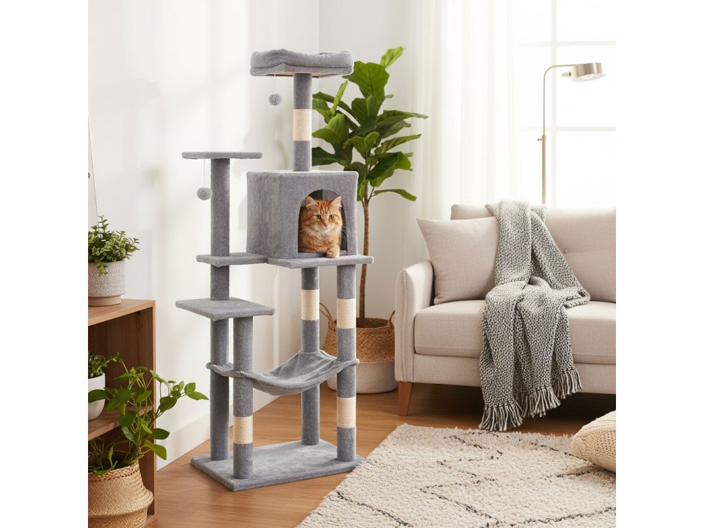 Stabilní a prostorné škrabadlo pro kočku 146 cm představuje ideální řešení pro domácnosti,