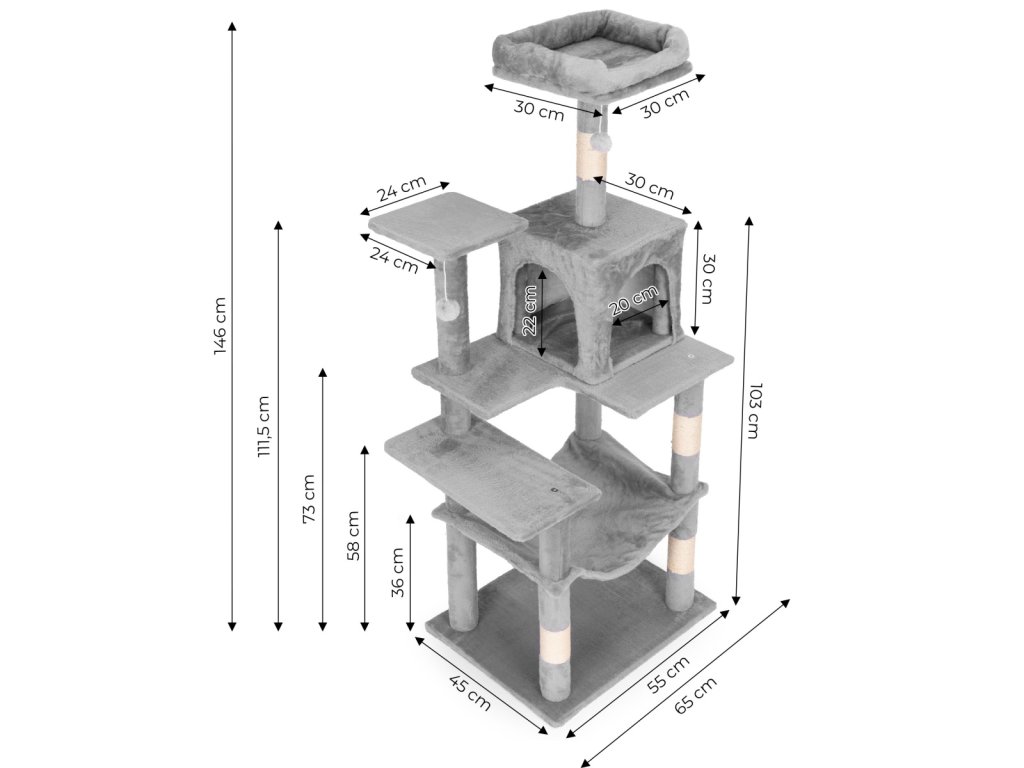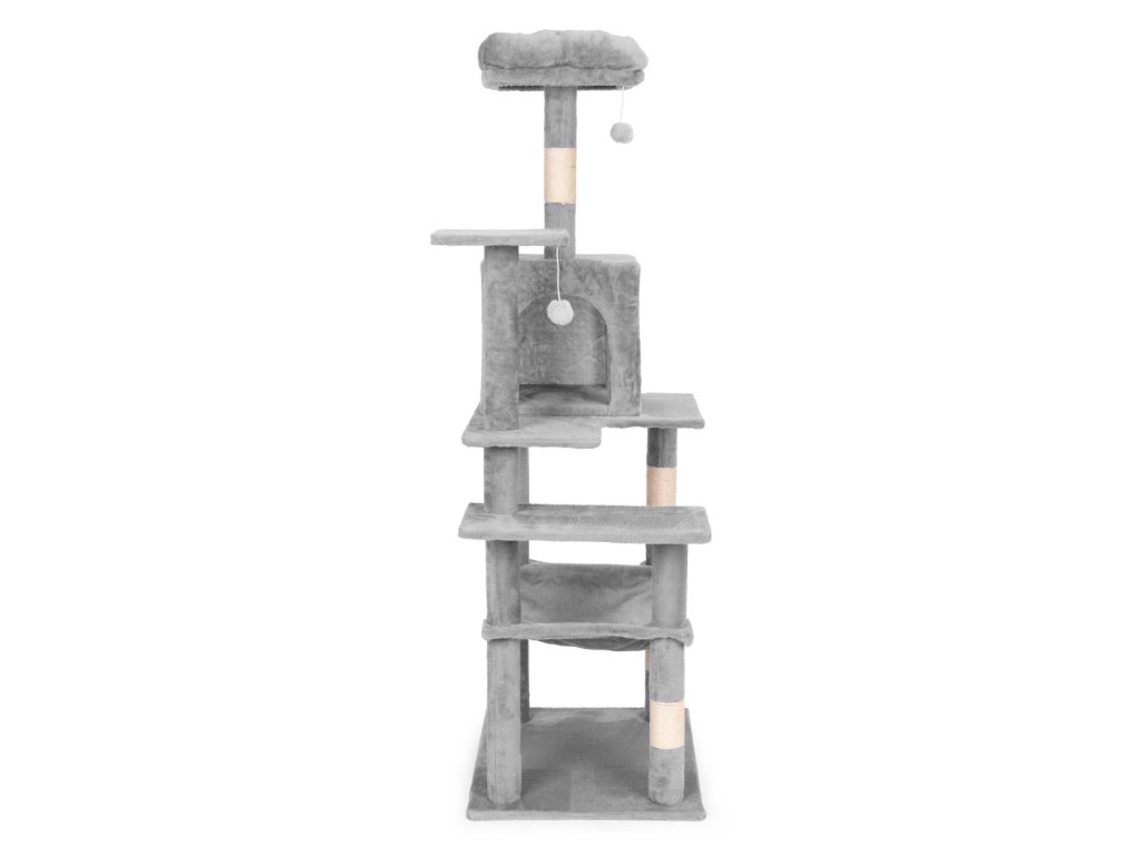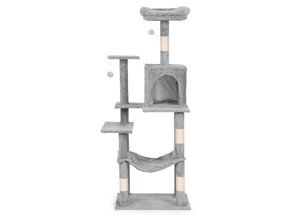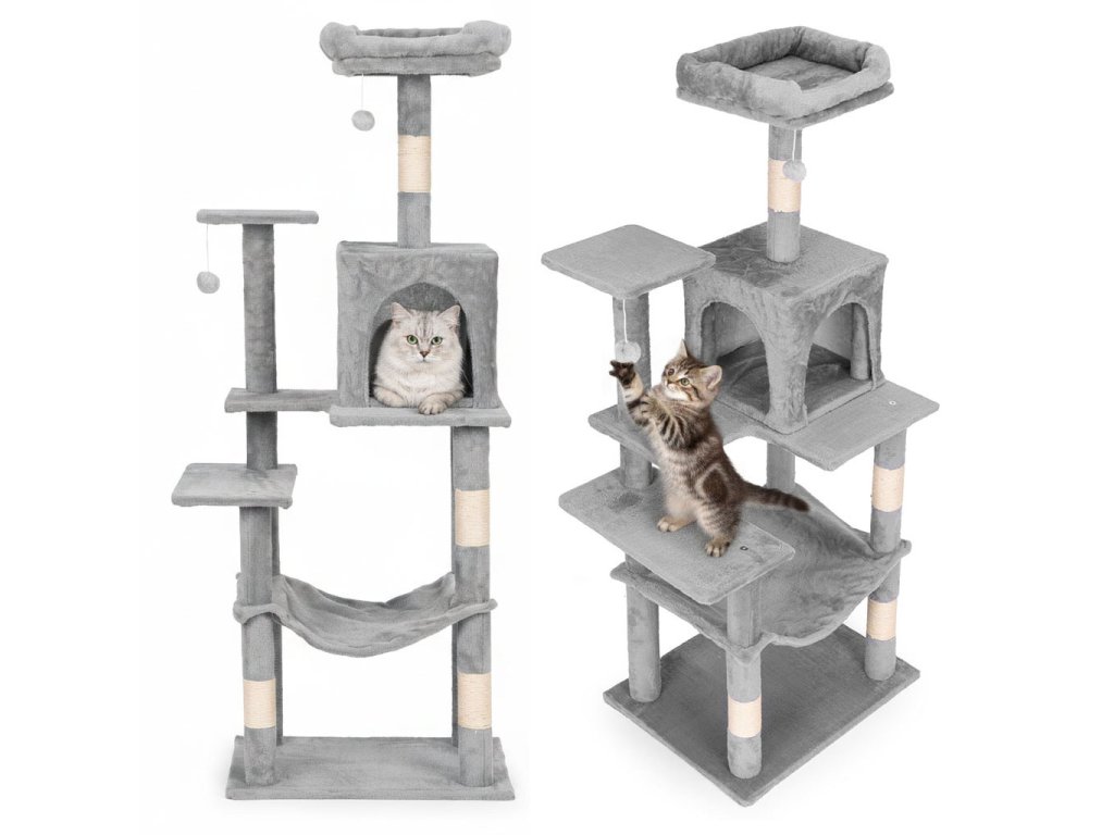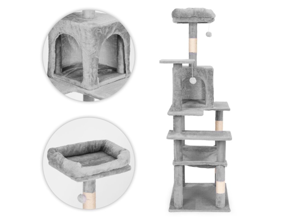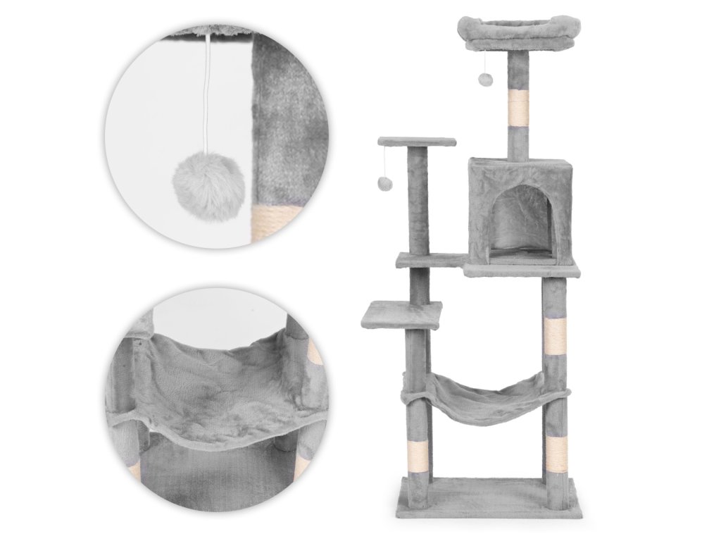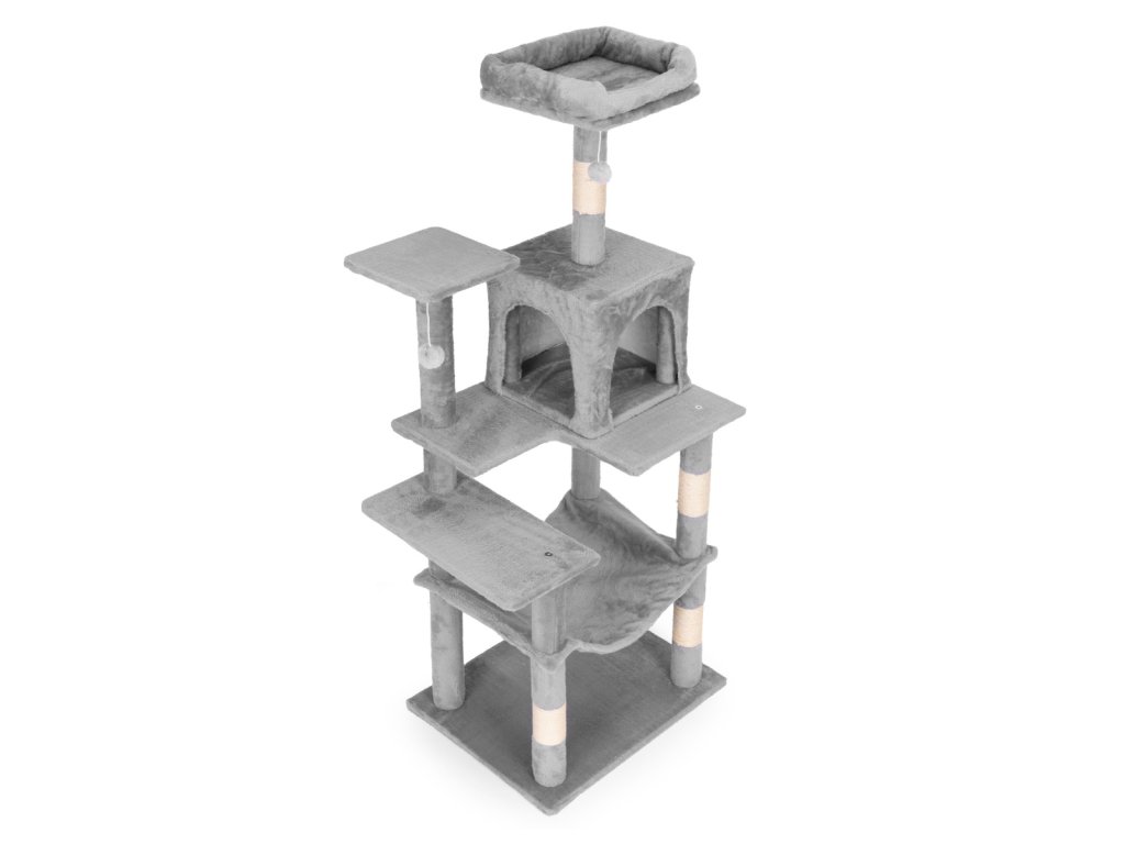 ŠKRABADLO PRO KOČKU 146 CM PETSI – VÍCEÚROVŇOVÁ KOČIČÍ VĚŽ ŠEDÁ.
