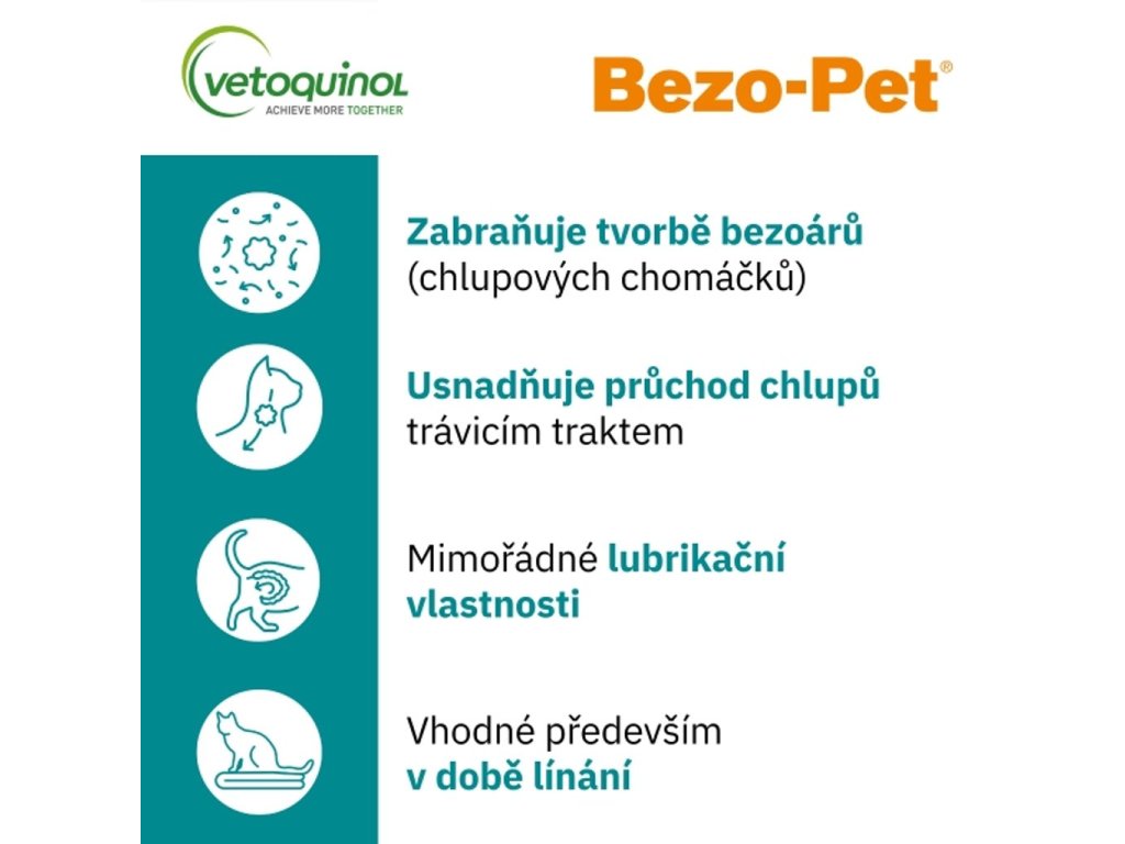 Bezo-Pet® gel je chutné doplňkové krmivo s výjimečnými lubrikačními vlastnostmi, určené k prevenci tvorby trichobezoárů (chlupových smotků) v trávicím traktu koček.