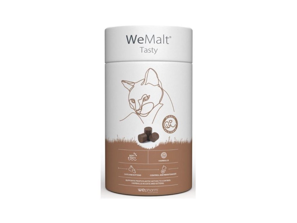 WeMalt Tasty je chutný pamlsek pro kočky a koťata, který pomáhá předcházet tvorbě chlupových chomáčků v žaludku. Při každodenní péči o srst dochází ke spolknutí chlupů, které se mohou hromadit a způsobovat nepříjemnosti. WeMalt napomáhá jejich přirozenému průchodu zažívacím traktem a tím chrání kočku před zvracením srsti a dalšími obtížemi.