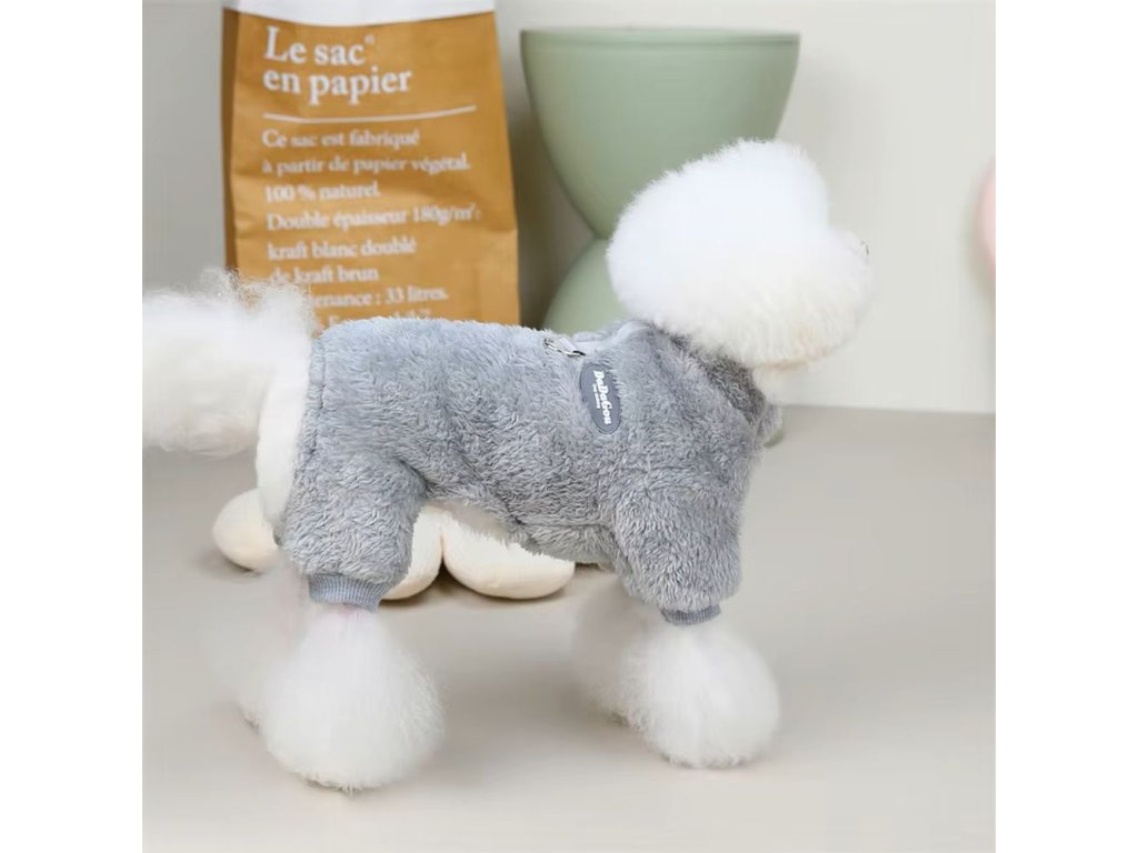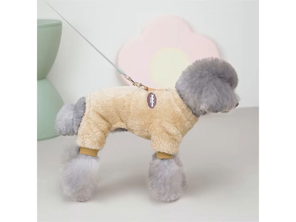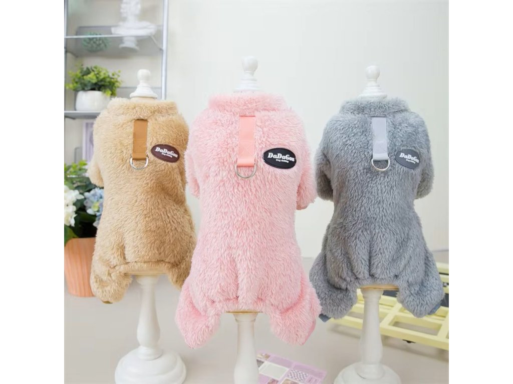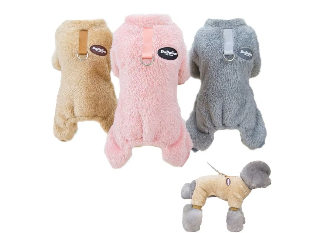 Stylový obleček - kombinéza pro pejsky malých a středních plemen, který je ochrání před chladem a sněhem. Vyrobený z fleecového materiálu, který je měkký a pohodlný a tak se v něm vašemu kamarádovi bude komfortně pohybovat. Vybírat můžete z růžové, šedé a khaki barvy a velikostí od S až XXL.