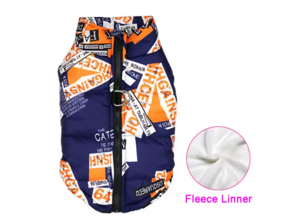 Vesta je vyrobena z odolného polyesteru, který je nepromokavý a větruodolný, takže spolehlivě ochrání psa před nepříznivými vlivy počasí. Vnitřní měkká fleecová podšívka (viz detail na obrázku) zajišťuje výbornou tepelnou izolaci a příjemný pocit při nošení 🐾✨. Střih vesty je navržen tak, aby neomezoval pohyb a dobře seděl různým typům postavy i plemen.