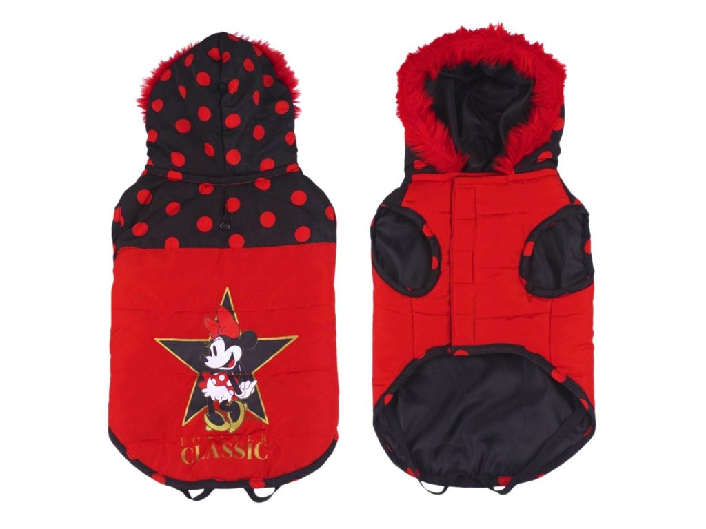 Zimní obleček, který zahřeje Vašeho psa s motivem Minnie. Velikost M, rozměry viz tabulka. S kapucí. Pohodlné navlíkání, zapínání na suchý zip. Nepromokavý, vyteplený. Materiál: 100% polyester. Hmotnost: 0,15 kg. Barva: červeno - černá. Výrobce: Cerda.