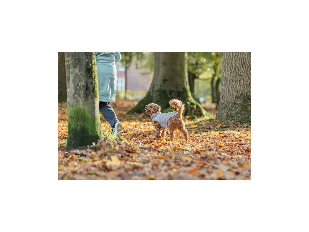 Vyrobená je z odolného polyesteru, který se snadno čistí a je příjemný na nošení. Elegantní šedá barva je univerzální a sluší pejskům všech plemen.